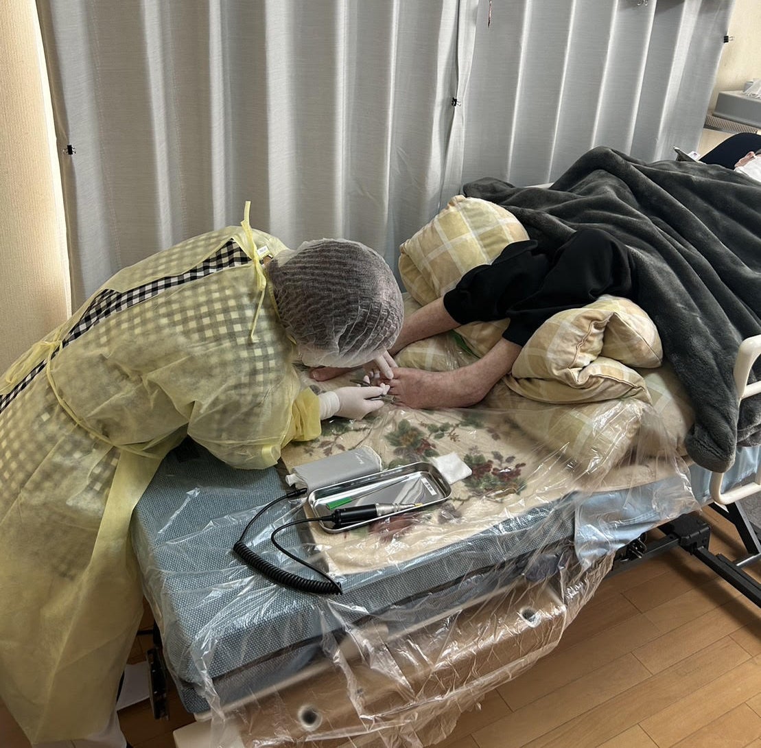 株式会社マルナニエは昨年10月から5人のスタッフと共に宮城県内の高齢者施設や個人宅を訪問し、自分では爪を切る事が出来ない高齢者や、厚くなり変形した爪に対応できないご家族に寄り添ってきました。