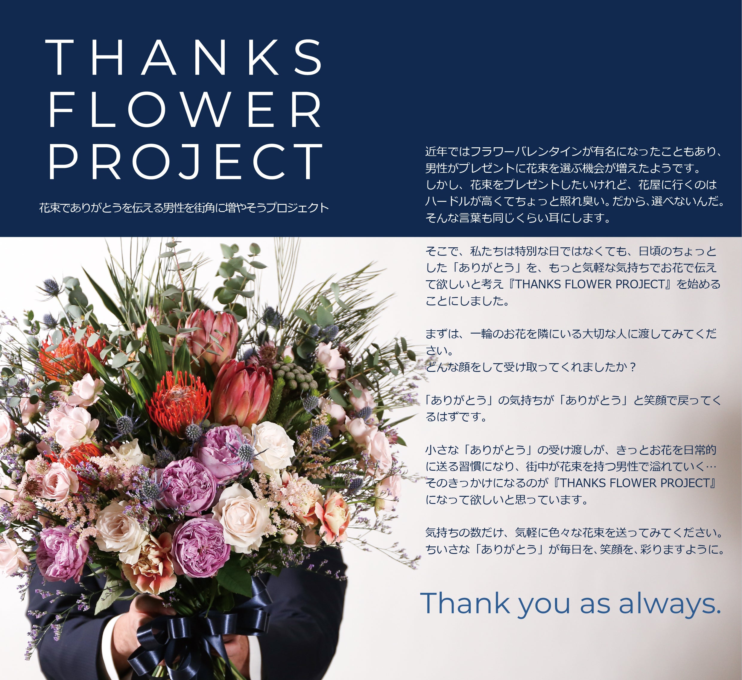 そのための取り組みとして【THANKS FLOWER PROJECT】を考案しています。内容としては、花束で“ありがとう“を伝える男性を街角に増やそうというプロジェクトです。