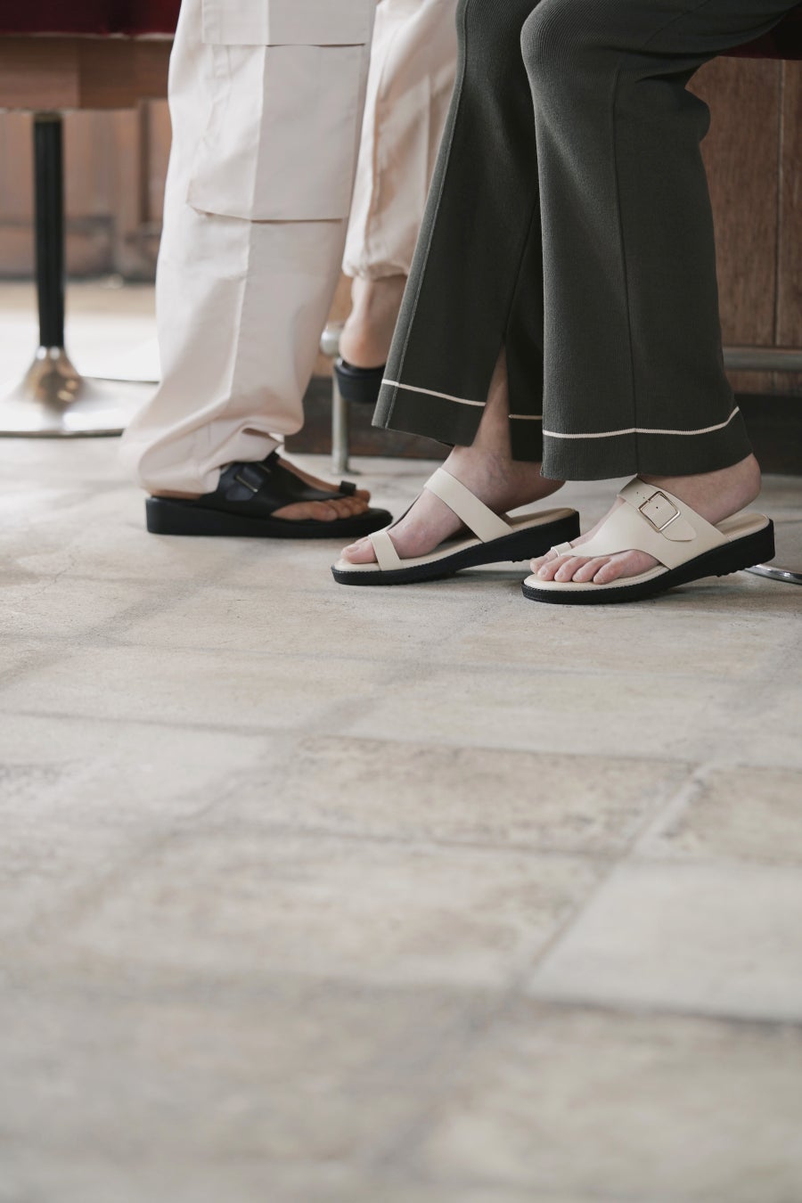 1952年に奈良で創業した川東履物商店が、日本で長年親しまれてきたヘップサンダルを再解釈したサンダルブランド。どんなスタイルも受けとめるニュートラルな佇まいと、快適な履き心地。両手がふさがっていても玄関でサッと履けて、買い物やデスクワークにちょうどいい。