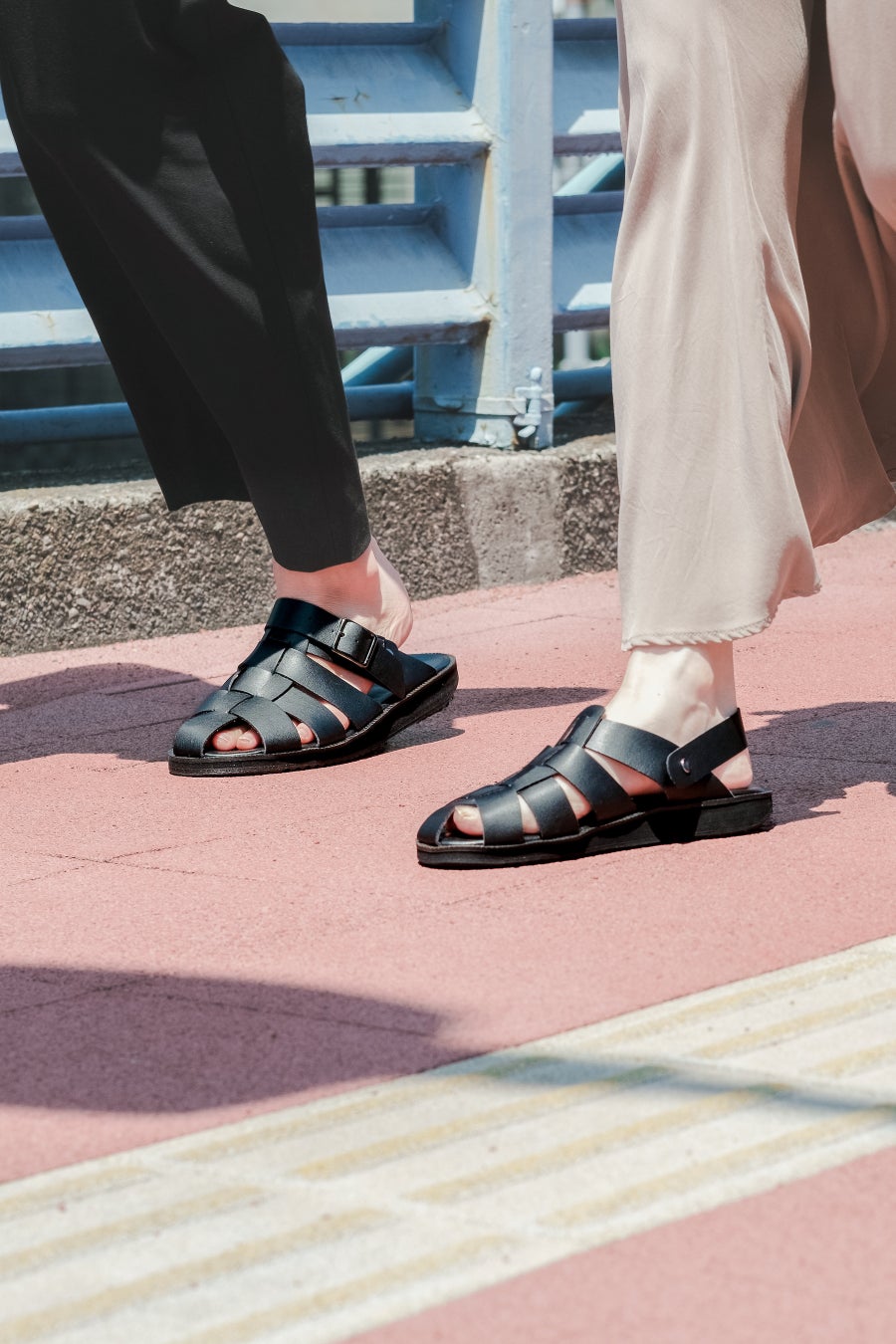HEPによる初の本革レザーサンダル。数々のレザーシューズを担ってきたオリエンタルシューズ株式会社との初タッグによって実現しました。アッパー(甲)には仏タンナーより仕入れたボックスカーフを。そしてアウトソール(底材)には、ビブラムソールを採用しています。