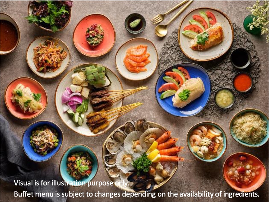 アトリウム・レストランでのビュッフェディナーまたはコースディナー(2名様分)をお楽しみいただき、世界各国の味わいとシンガポールの料理をご堪能ください。シーフードの盛り合わせ、ジューシーなビーフレンダン、サクサクのロティプラタ、風味豊かな海南チキンライス、香り豊かなラクサなど、豪華なお料理をご提供します。この限定特典は、以下の期間中に1回ご利用いただけます。