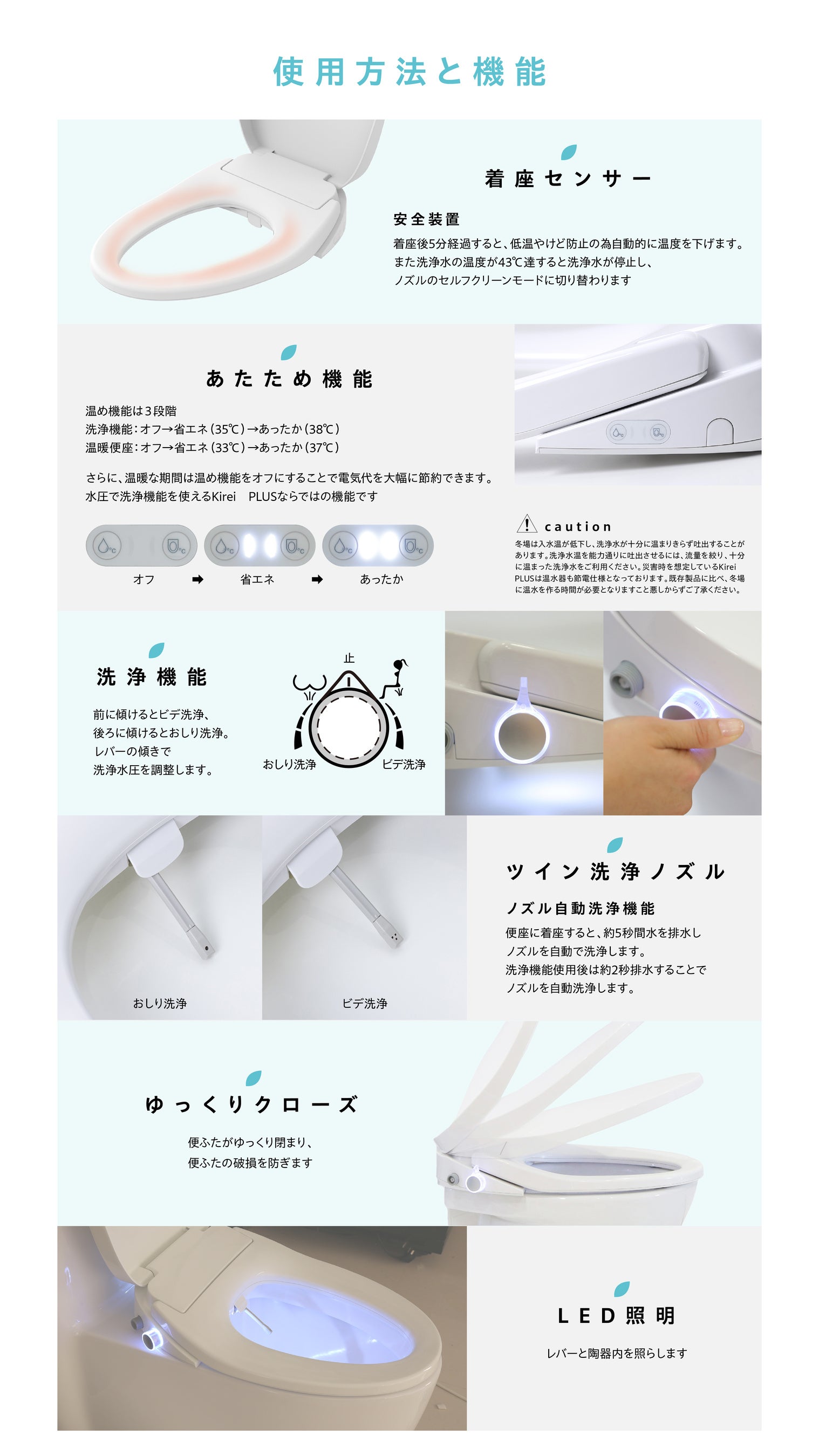 Kirei PLUSなら日常生活は普段通りの「あったか便座」と「あったか洗浄」。