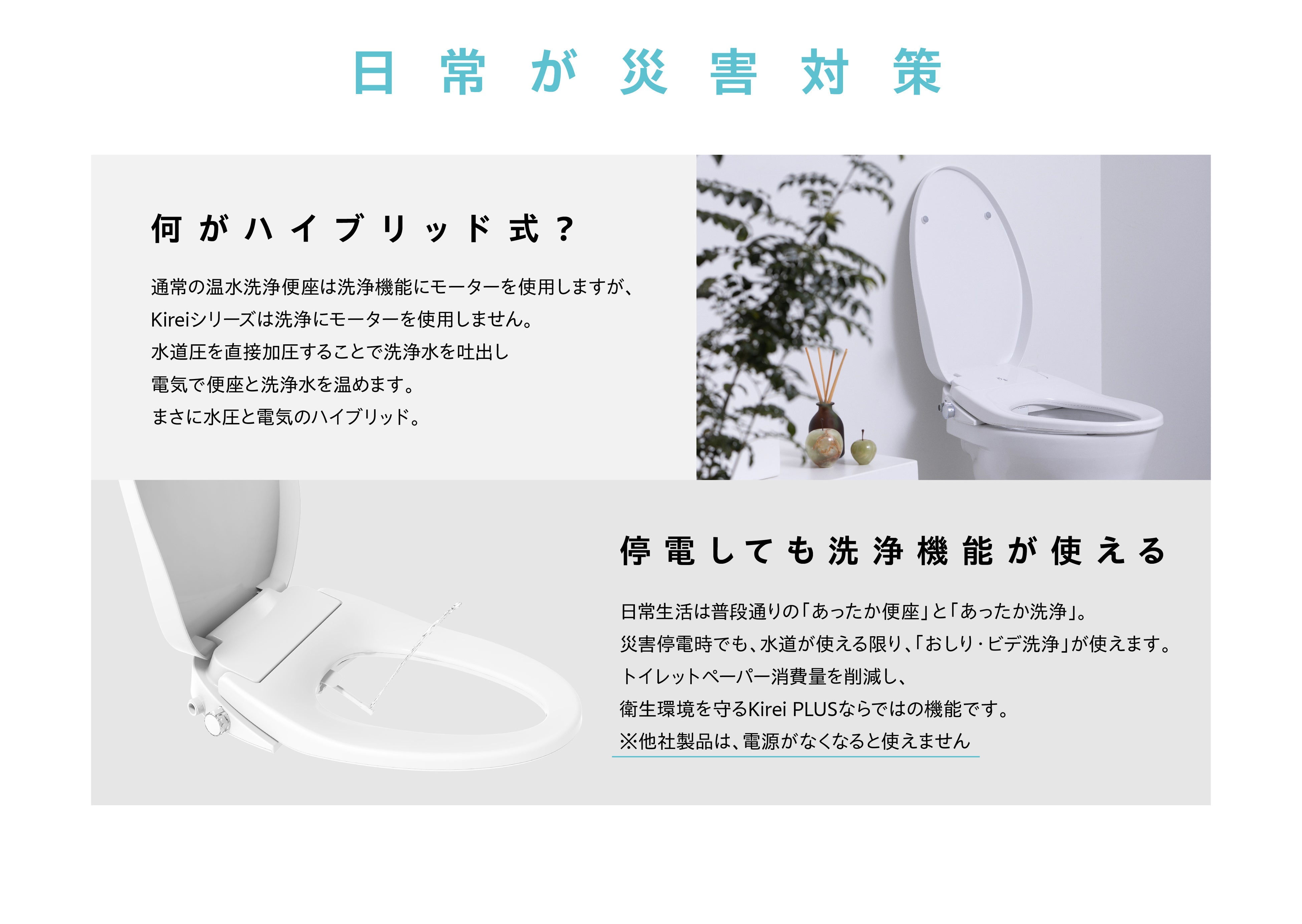 「日常が災害対策」ハイブリッド式温水洗浄便座Kirei PLUS登場