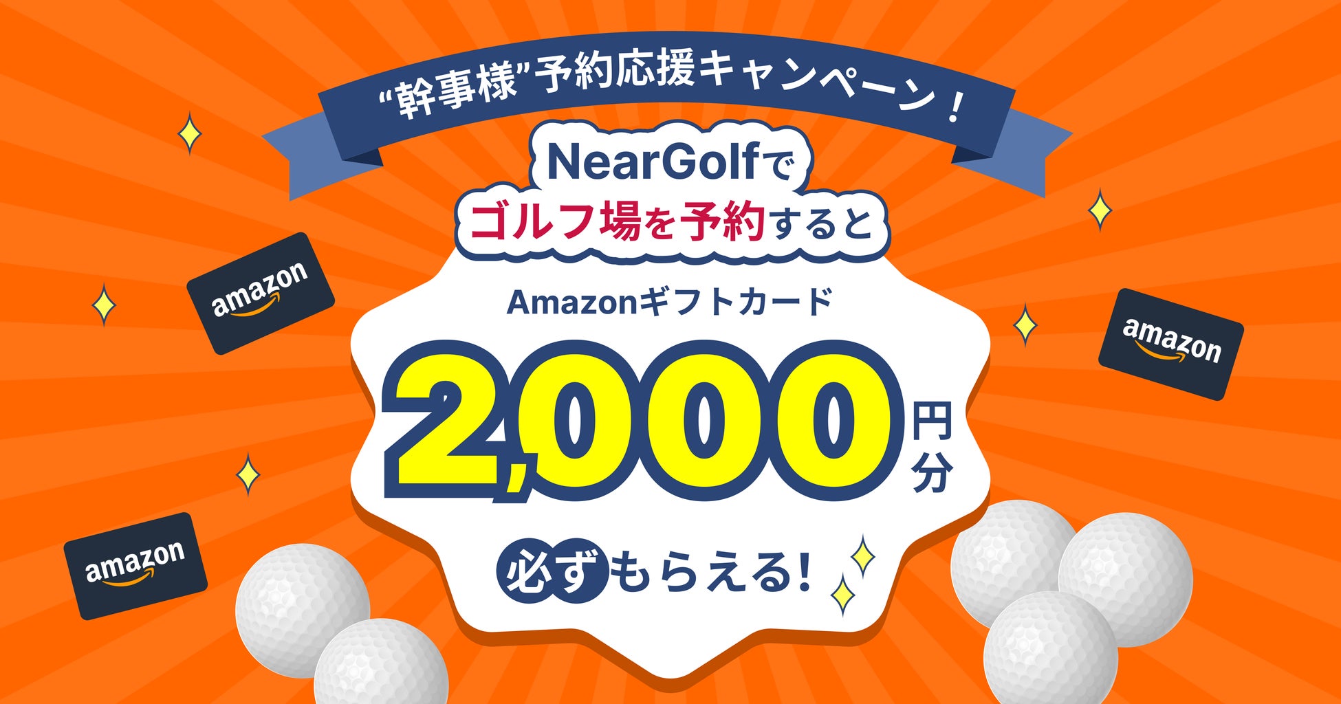 NearGolfは、2024年2月12日から2月23日の期間中、ゴルフ場を予約された方全員に2,000円分のAmazonギフトカードがもらえる「幹事様予約応援キャンペーン(※)」を開催いたします。