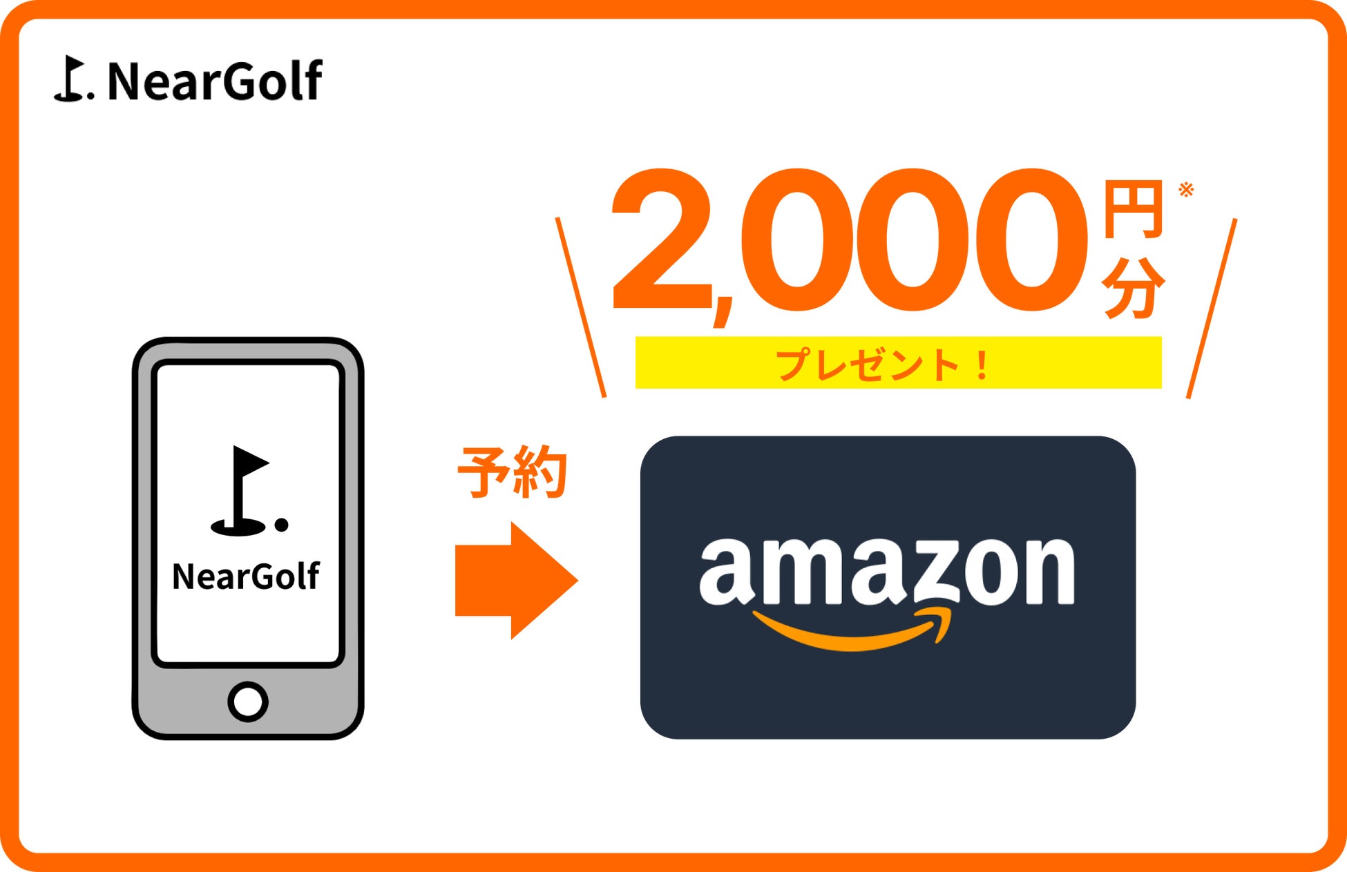 キャンペーン期間中にNearGolfでゴルフ場を予約されたお客様を対象に、Amazonギフトカード2,000円分を送付いたします。