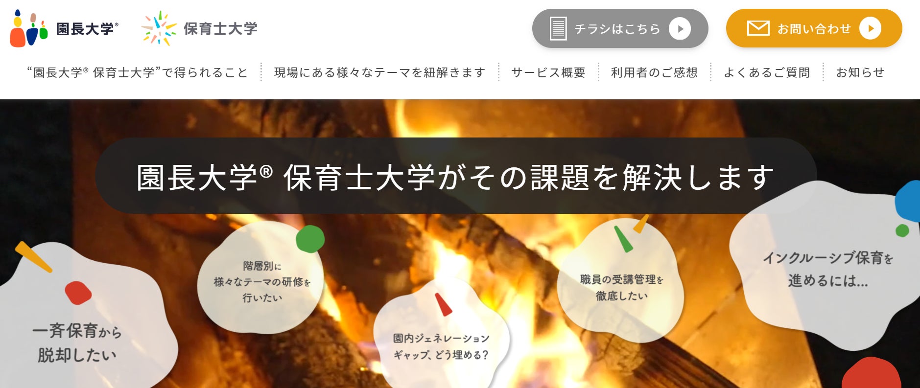 「園長大学Ⓡ 保育士大学」は、日本全国の保育園園長・保育士を育成するためのサービスです。