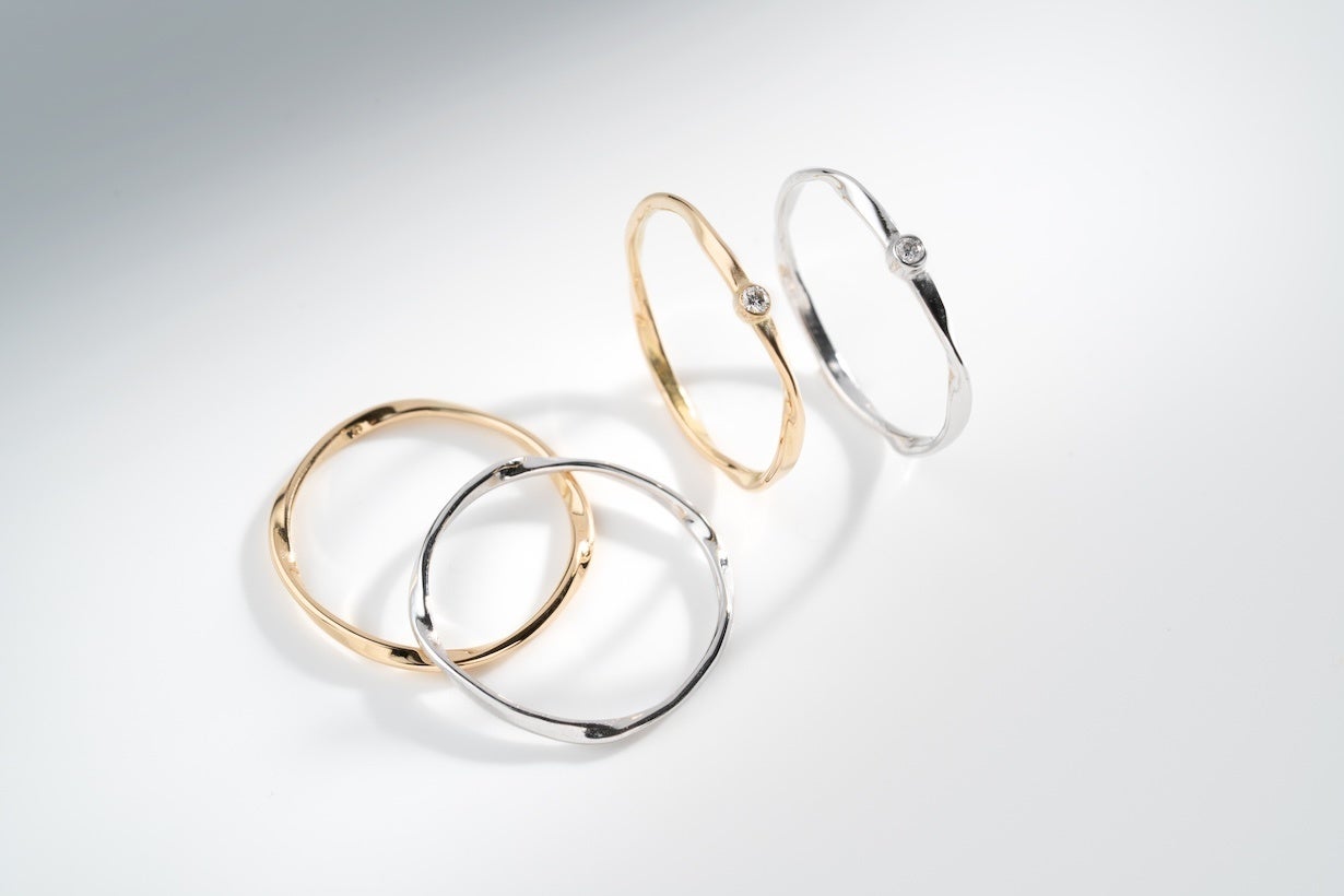 「フローライン」は重ね付けしても、他のジュエリーとよく馴染みます。
