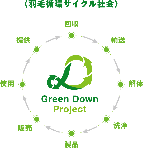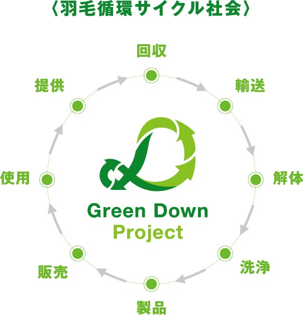 減少かつ不安定になっています。Green Down Projectでは、その限りある資源であるダウンをリサイクルすることで、地球に優しい循環型社会の実現を目指しています。