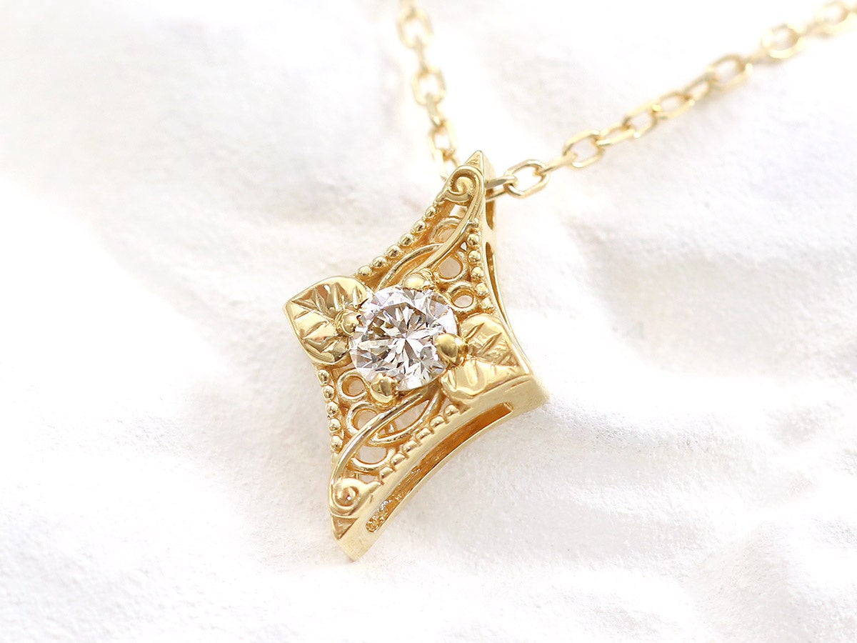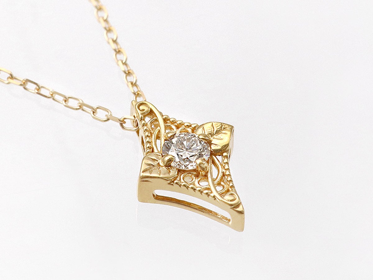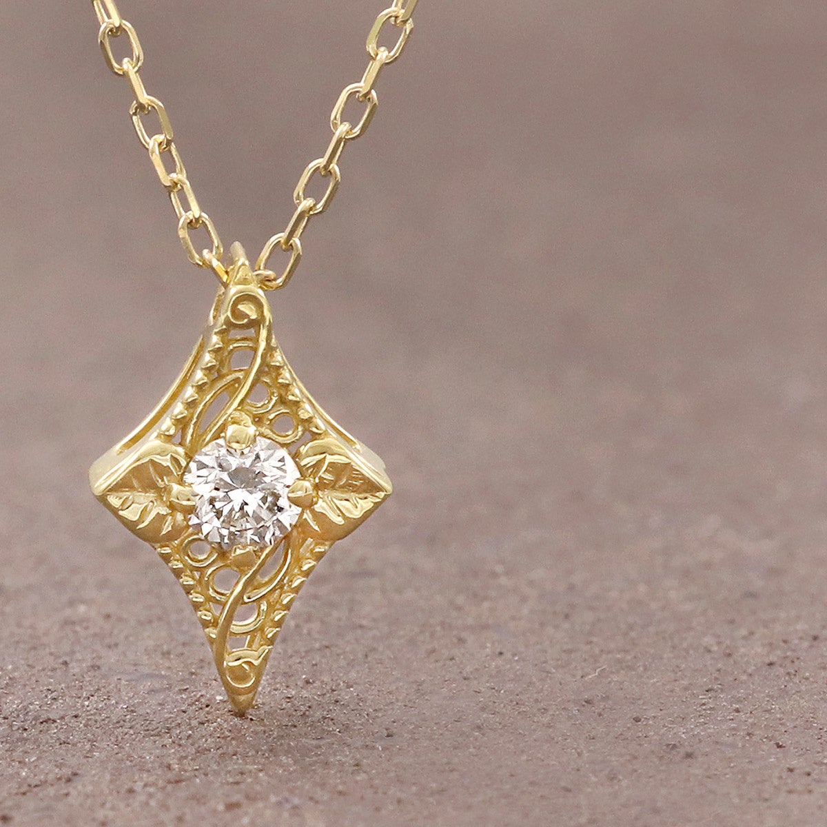 「心葉」K18 菱形×二葉葵ダイヤモンドネックレス |