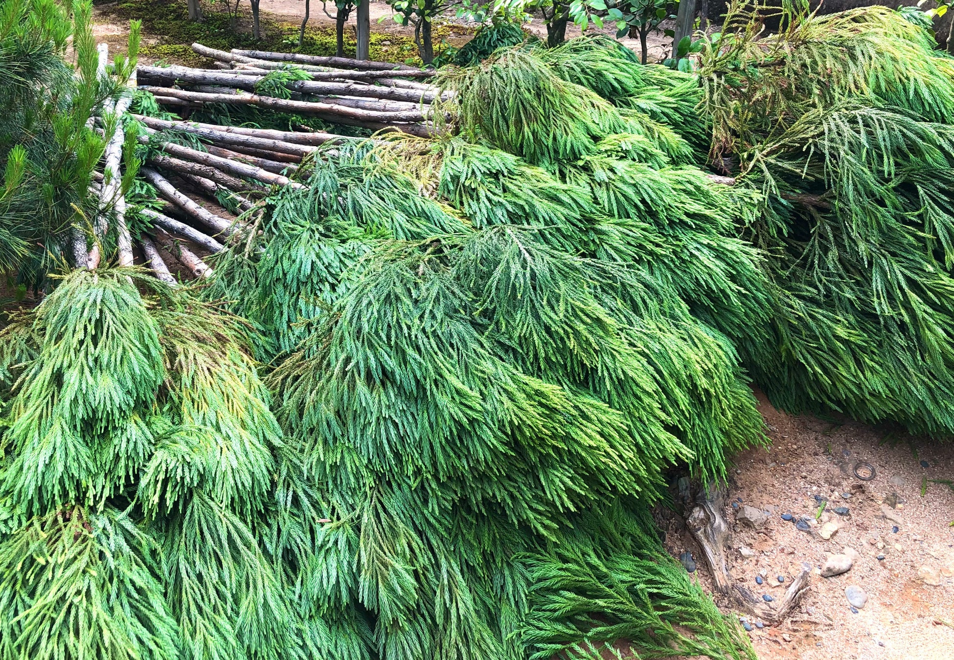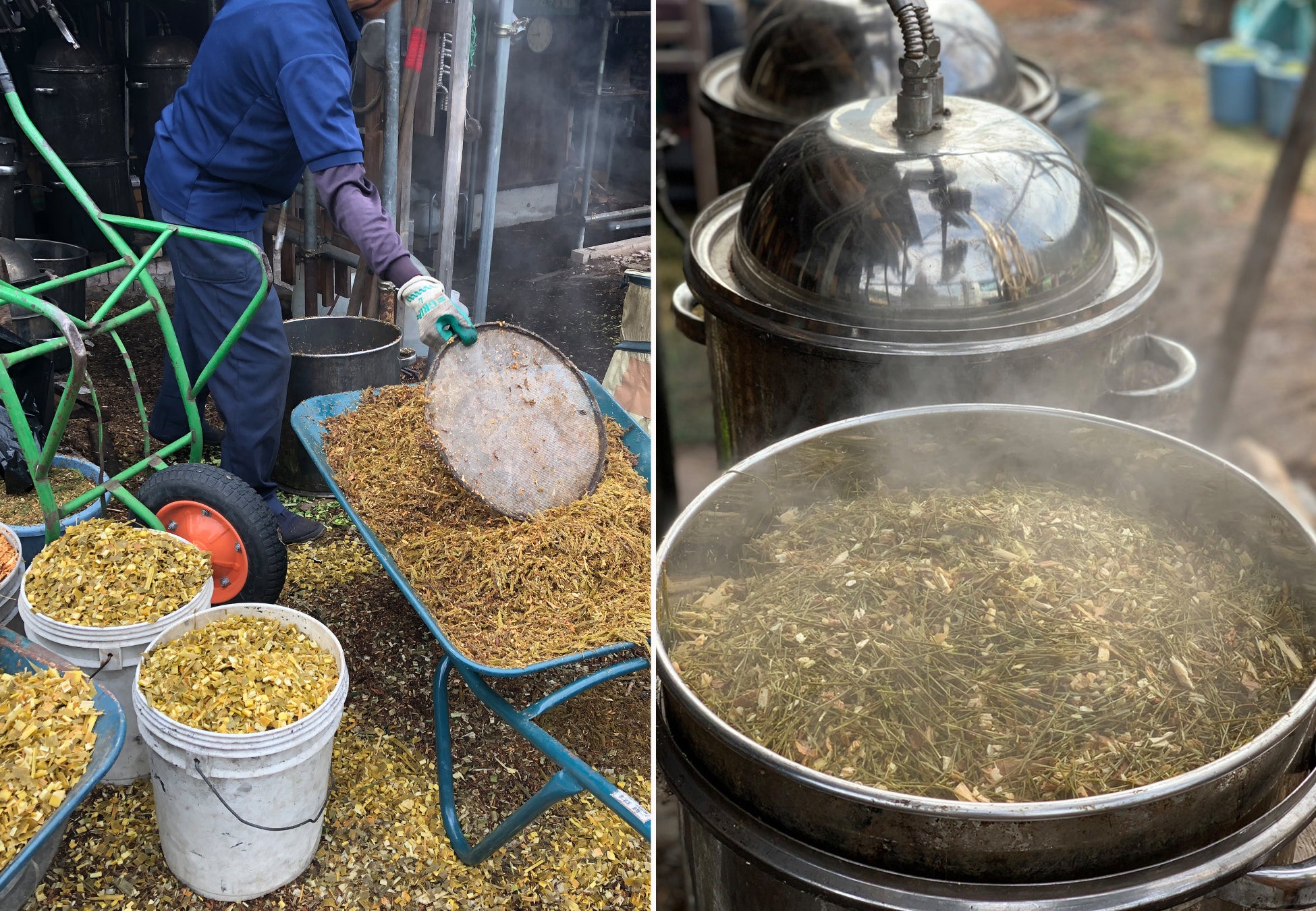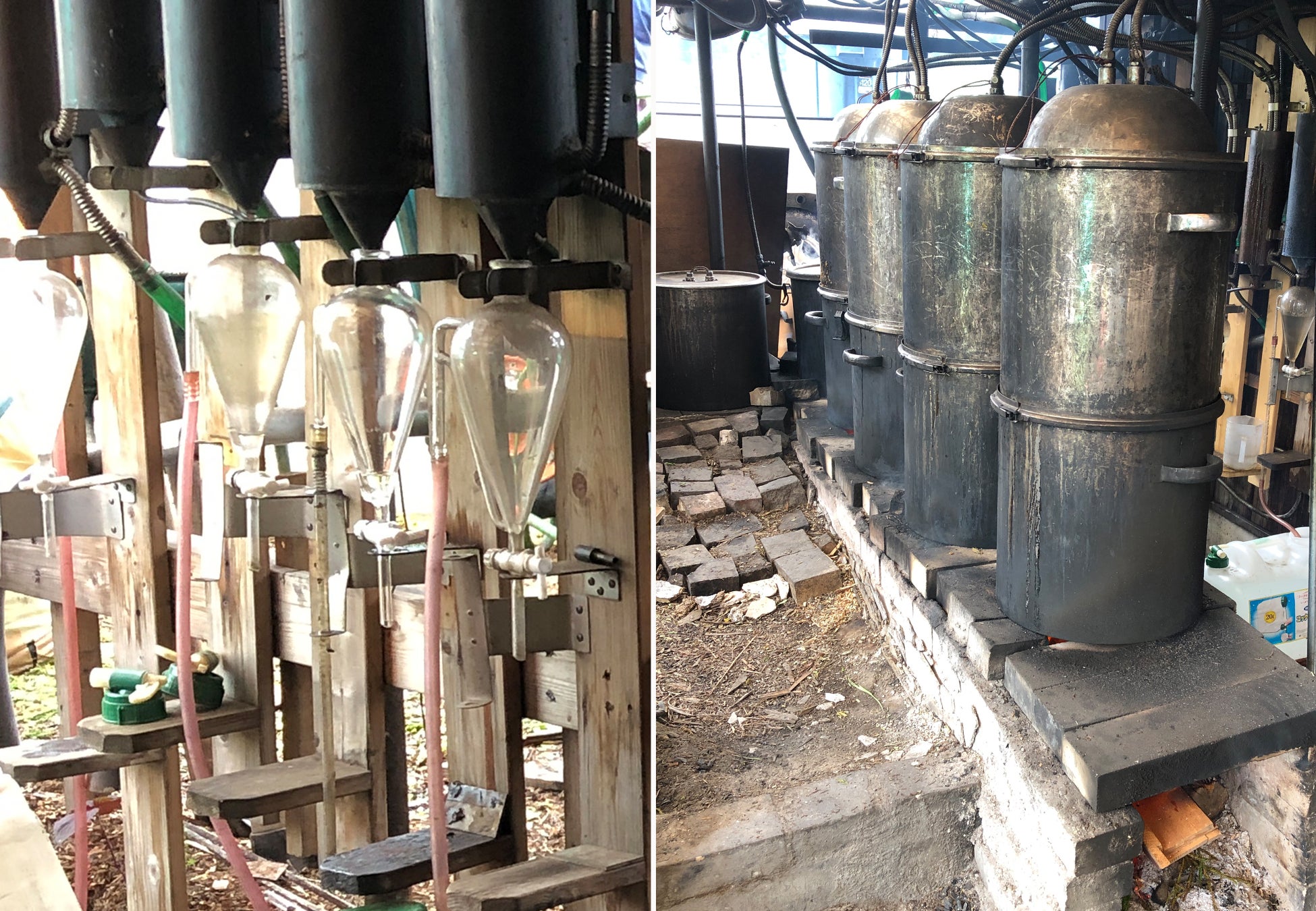 原料となる杉は、間伐材だけを使用し、水蒸気蒸留法による精油の抽出には、京北の工房にて、北山杉の枝打ちにより生じる廃棄物を原料とした薪や、地下水を利用しています。