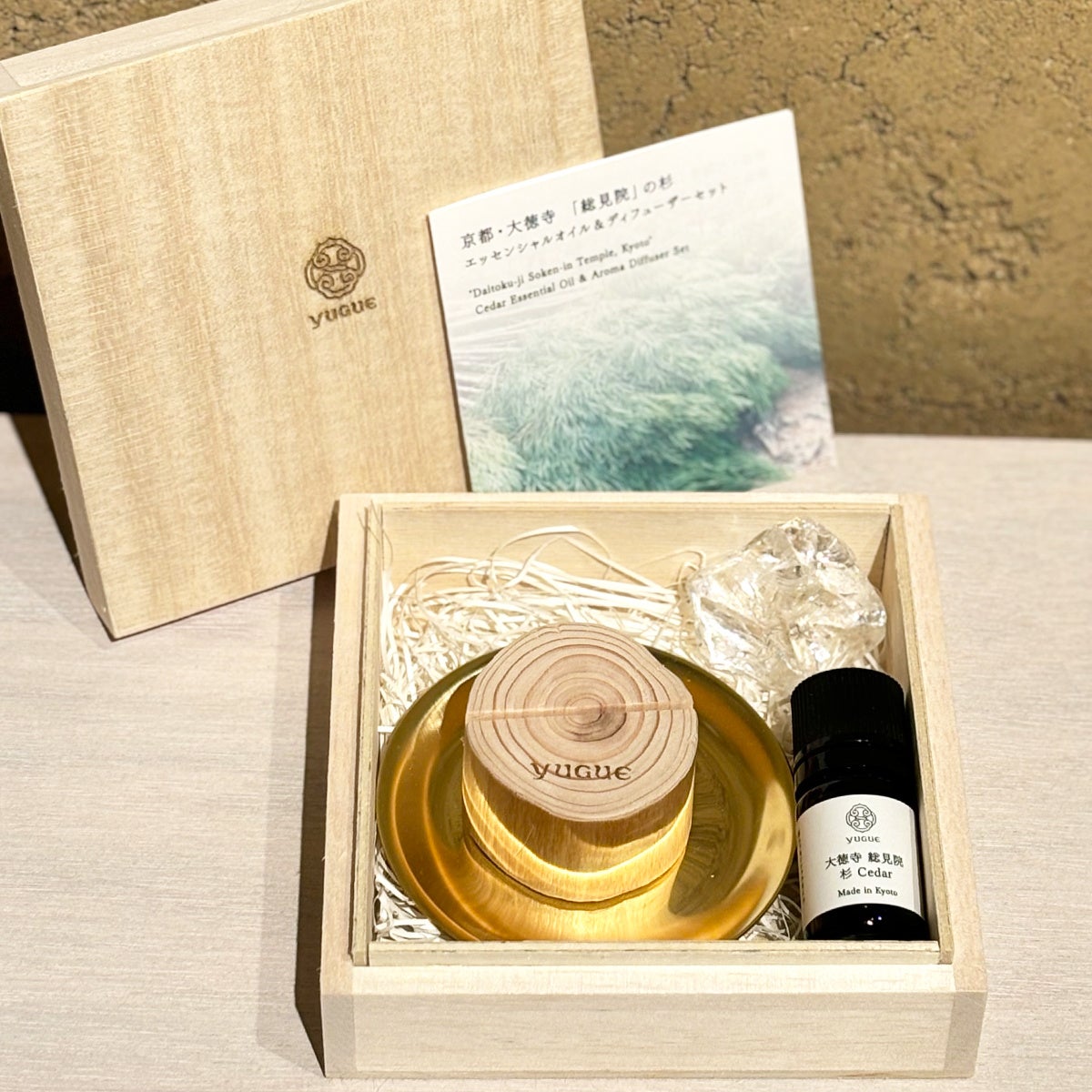 株式会社 作島が運営する、YUGUE-遊戯 (ユゲキョウト)は、京都の大徳寺「総見院」境内にて育まれた杉の間伐材を再利用した、天然100%の杉エッセンシャルオイル&ディフューザーセットを3月1日より発売します。心に寄り添う杉の香りは、新生活に穏やかな癒しを提供します。