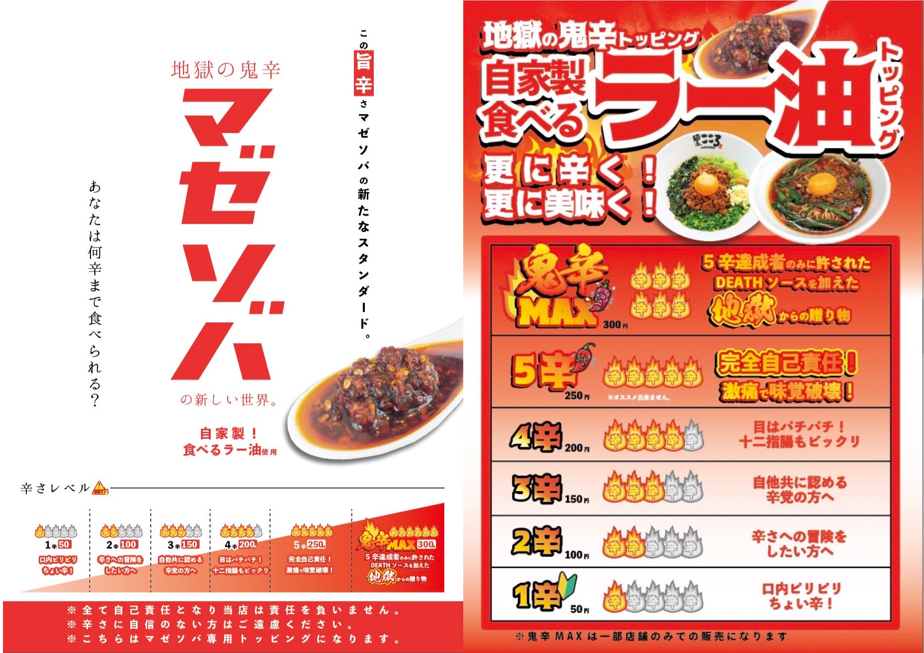 1年近く開発期間を要した自家製ラー油は、店頭販売中の商品の魅力を引き出し、さらに奥深い味わいをもたらす自信作です。商品の辛さレベルを最大5辛まで引き上げることができるのも特徴です。すべての商品にトッピングが可能で「旨辛台湾まぜそば」という新しい商品をお客様自身で作り出すことができます。