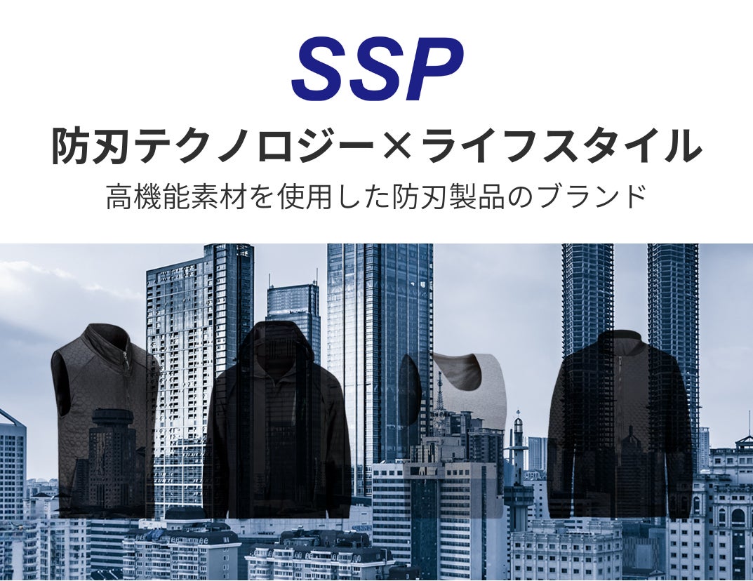 SSPでは最先端の耐刃刺突素材を用いた防刃ウェアおよび防刃アクセサリーを企画製造販売しており、「刃物で襲われる」という危機的状況を防ぐ点だけにとどまらず、 防犯のための初期段階から知識や道具を提供し、日常生活における個々人の防犯能力を高めることを目指しています。