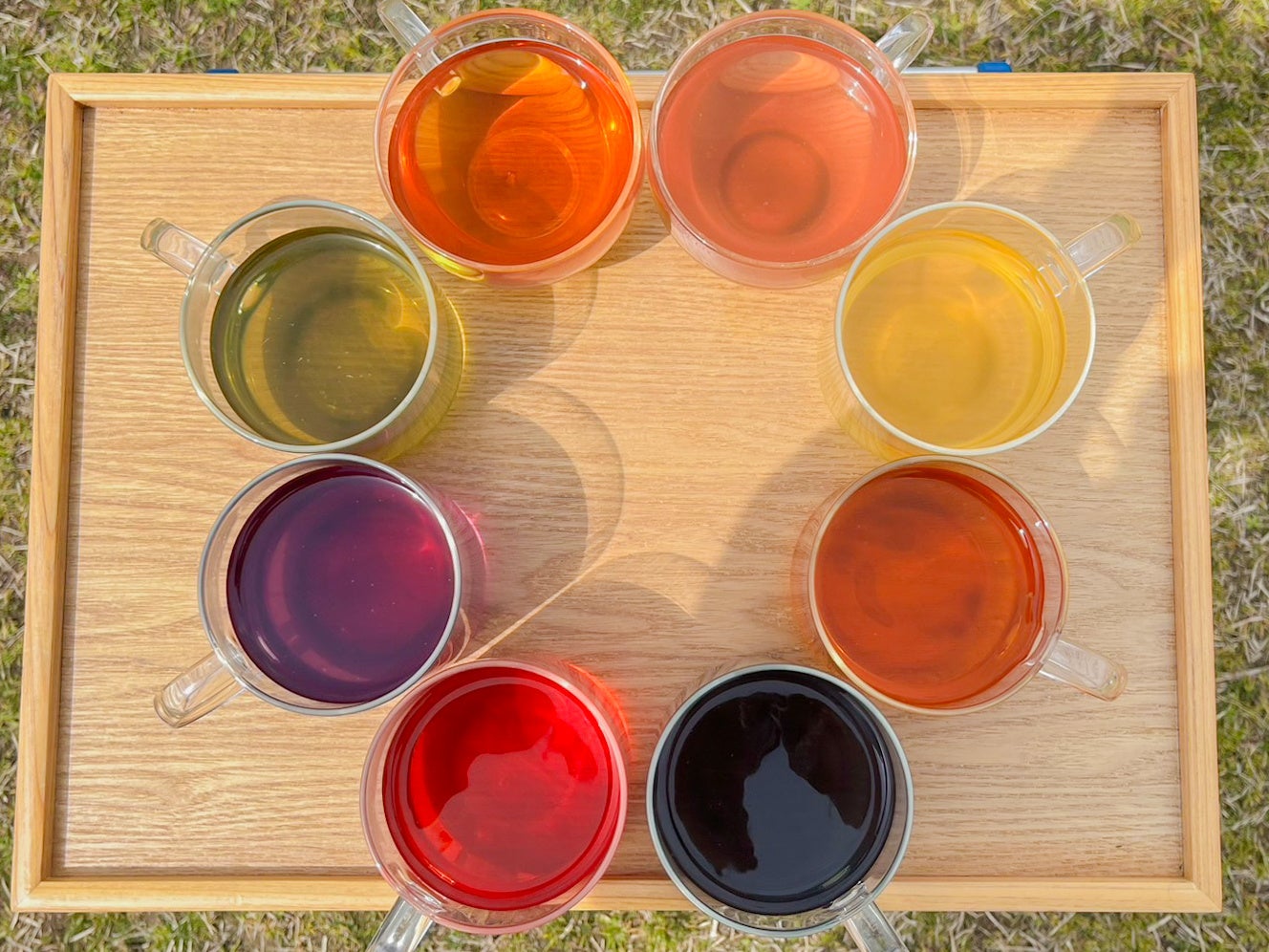 世の中にはカラフルなハーブティーは数多く存在します。青いお茶と称されるバタフライピーティーや、赤色が目を惹くハイビスカスティーなどなど。しかしそれらは、1種類、または2種類ほどのハーブの掛け合わせでブレンドされています。