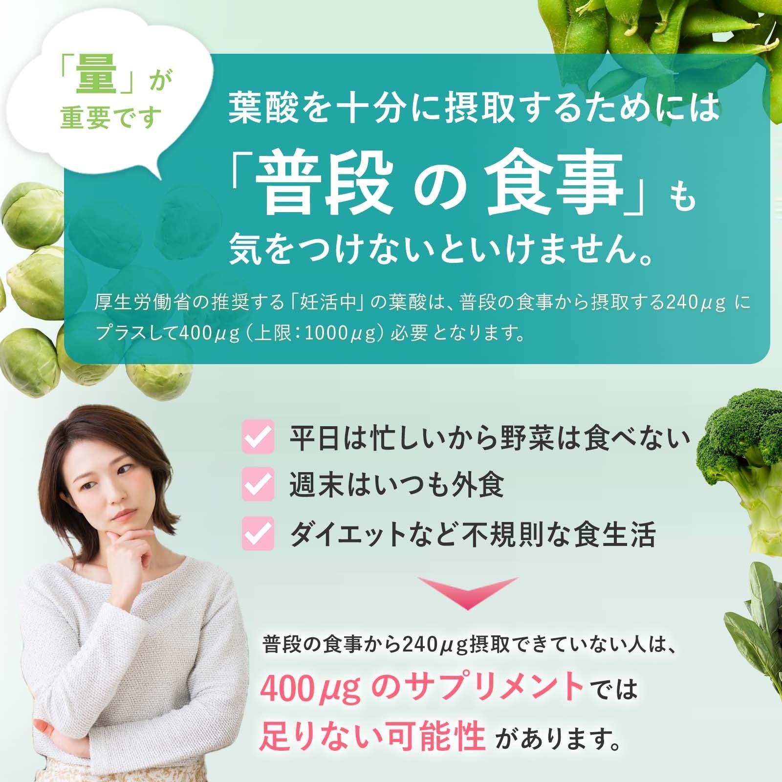 【こだわりの成分1:葉酸】 妊活の基本の葉酸の含有量は業界No.1クラス