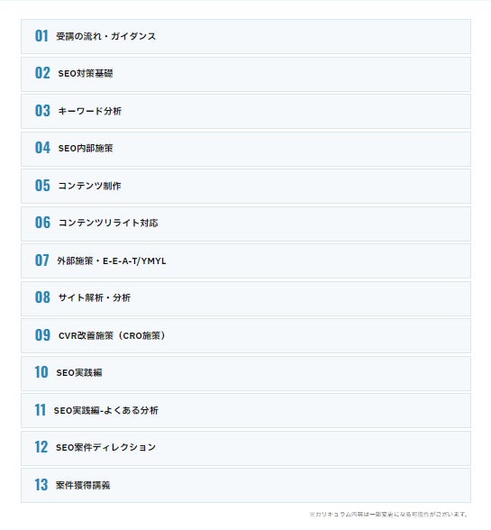講師は全員、現役のSEOマーケターです。経験・実績が豊富で現場の生の話や自身の体験に基づいたキャリア相談も可能です。