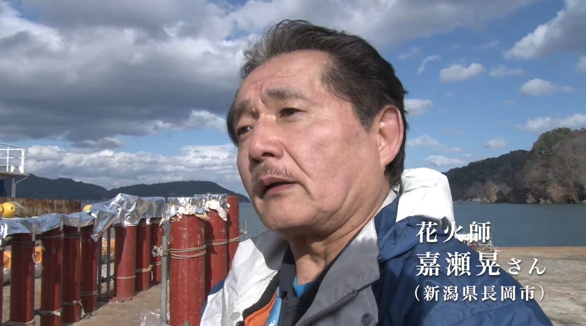 白一色の花火「白菊」は、シベリアで抑留され現地で命を落とした戦友を弔うために、新潟県長岡市の花火師、故・嘉瀬誠次さんによって作られました。ロシアで打ち上げられたのがはじまりで、その後は長岡空襲があった8月1日や終戦記念日に長岡市内で打ち上げられています。そして2020年からは嘉瀬誠次さんのご子息である嘉瀬晃さんのご尽力で、東日本大震災の犠牲者の慰霊のために釜石市の海岸でも打ち上げていただいています。