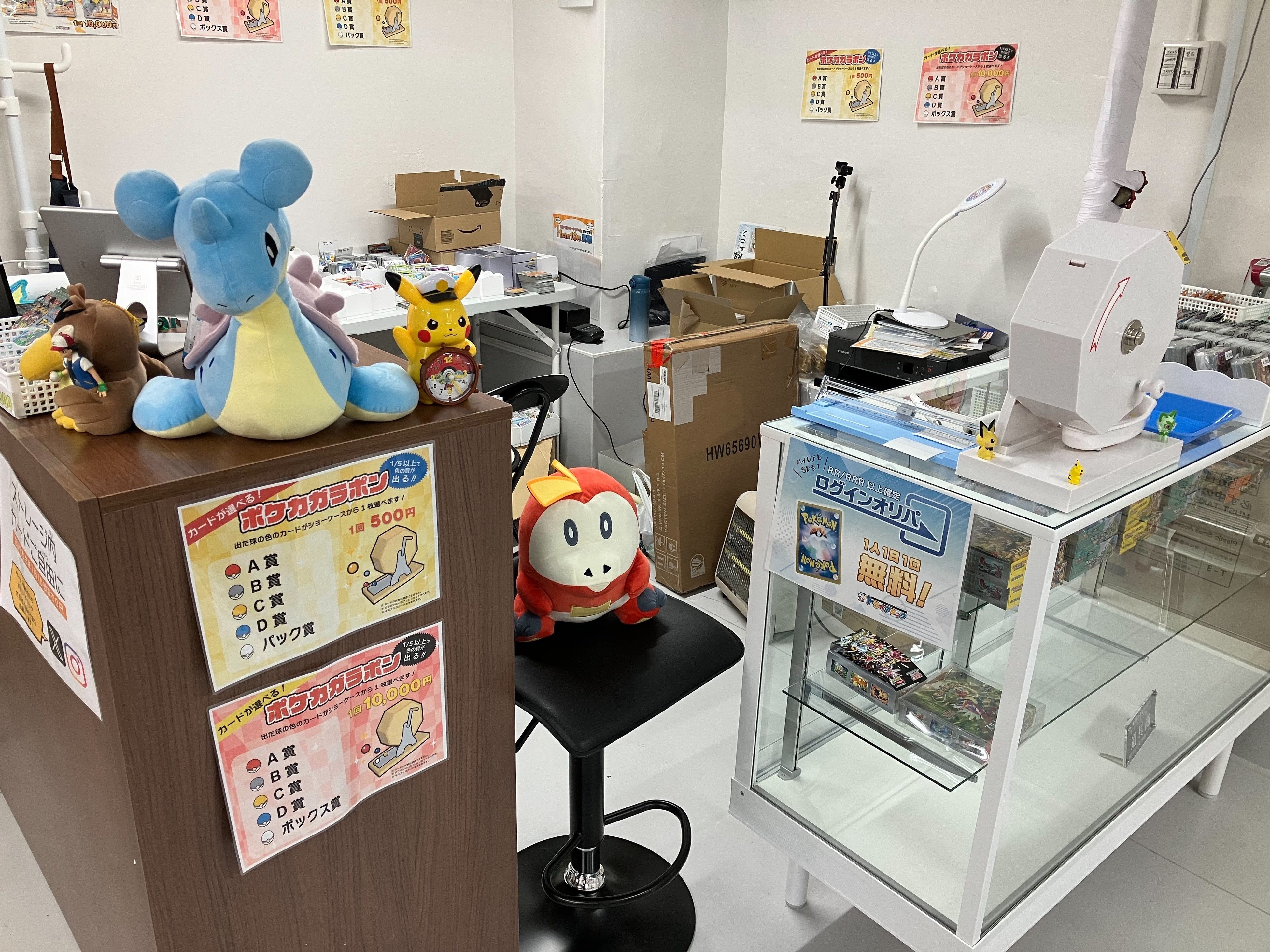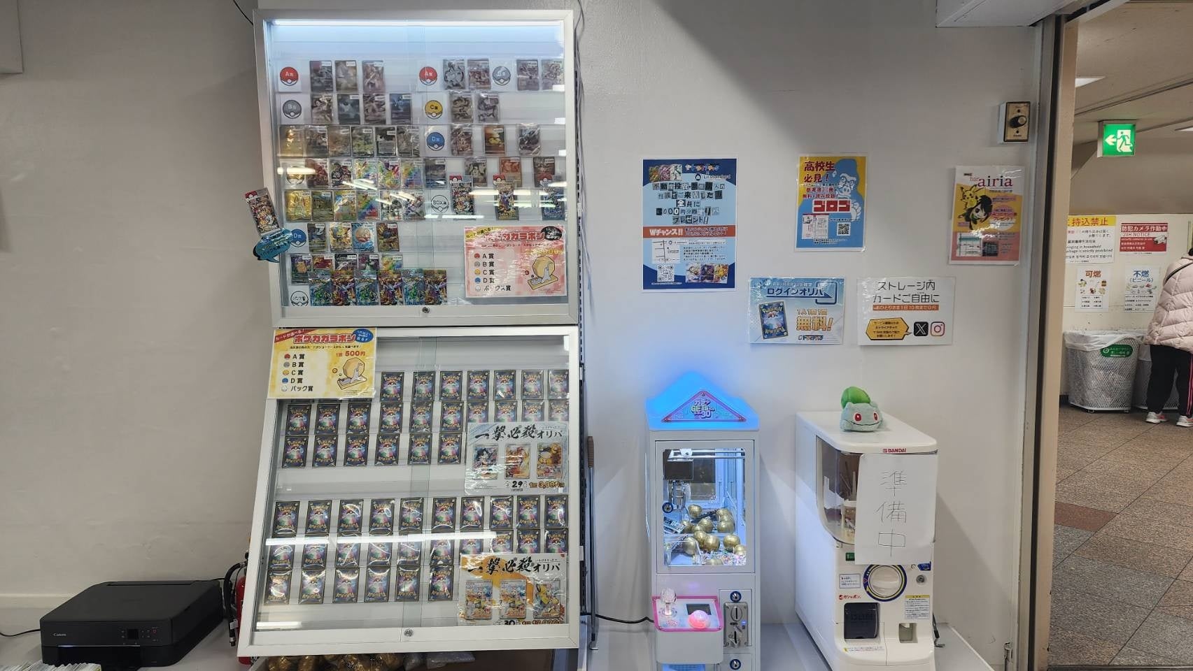 中野ブロードウェイ店ではポケカのオリパを購入できる自動販売機(自販機)を2台設置しているほか、出た玉によって当たりが出るポケカのガラポン、ポケカパックが狙えるクレーンゲームを設置しています。