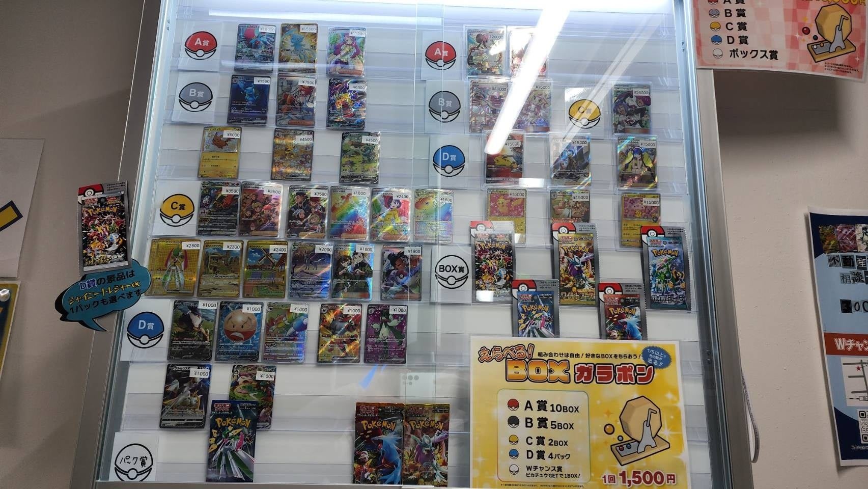 ショーケースの中身も随時更新中。ポケモンカード以外も並ぶかも・・・?