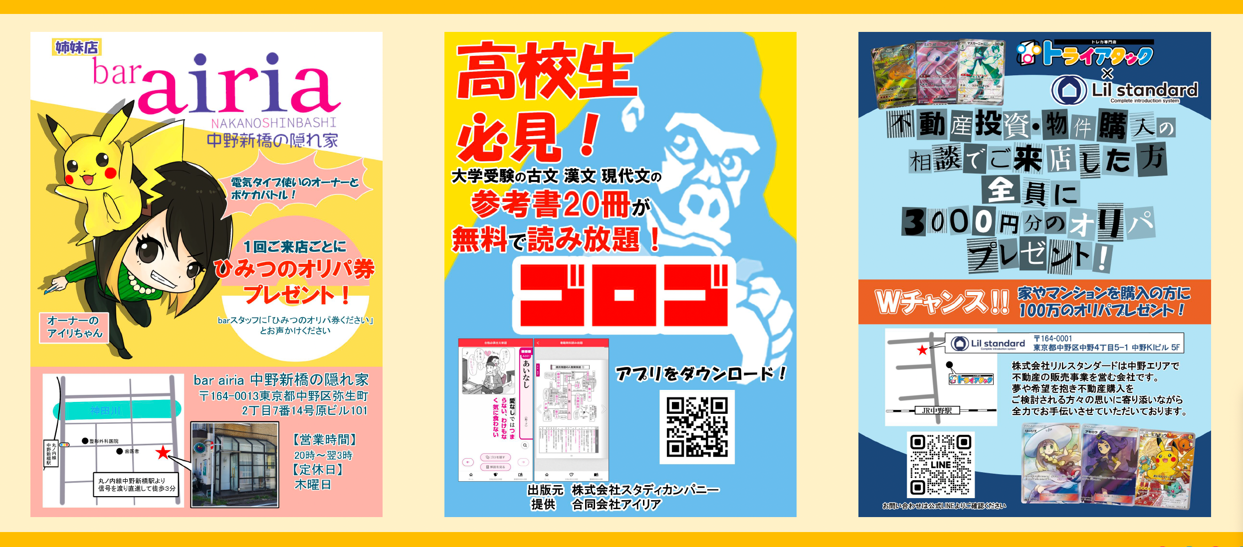 中野区内に限らず、他地域やWEBサービスの広告掲載も可能です。