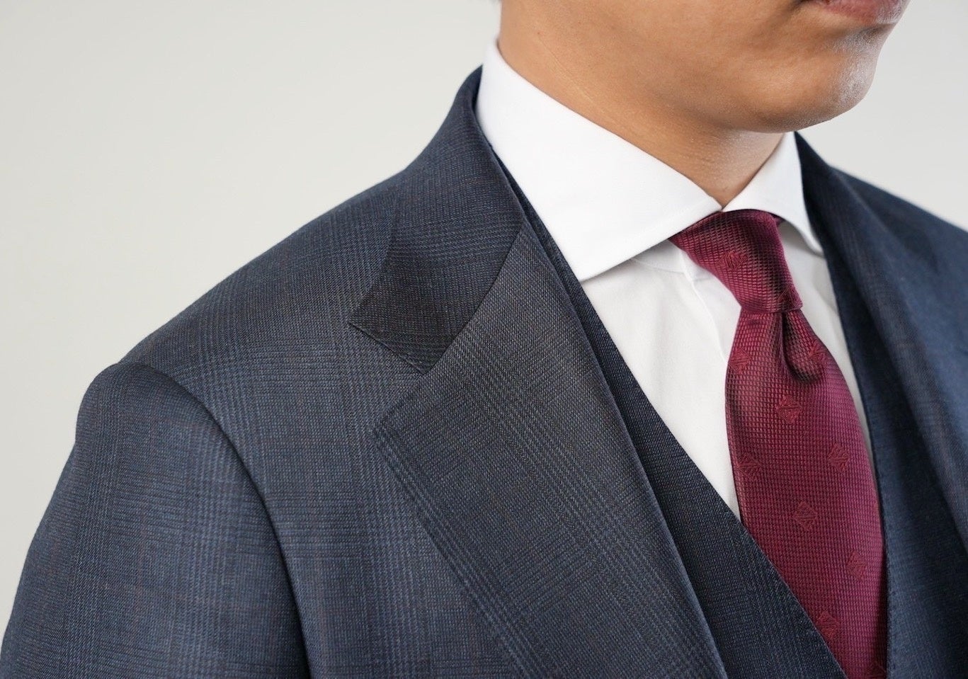 笏本縫製は1968年、岡山の田舎の小さな町にある自宅の一室で創業。2015年にはネクタイ縫製で培った技術を活かしオリジナルブランド「SHAKUNONE(笏の音)」を立ち上げました。魅力的な製品を作り出すため、手間を惜しまず、妥協は許さず、職人の手間を惜しみなく盛り込んだ製品づくりを行っています。有名ブランド向けの製品も手がけ、ユーザーとの直接的な関係を大切にし、ネクタイを通じて感動の瞬間を共有しています。多くのお客様に喜んでいただく中で「SHAKUNONEのネクタイに合うスーツが欲しい」というお問い合わせを受け、オリジナルスーツの開発に着手しました。