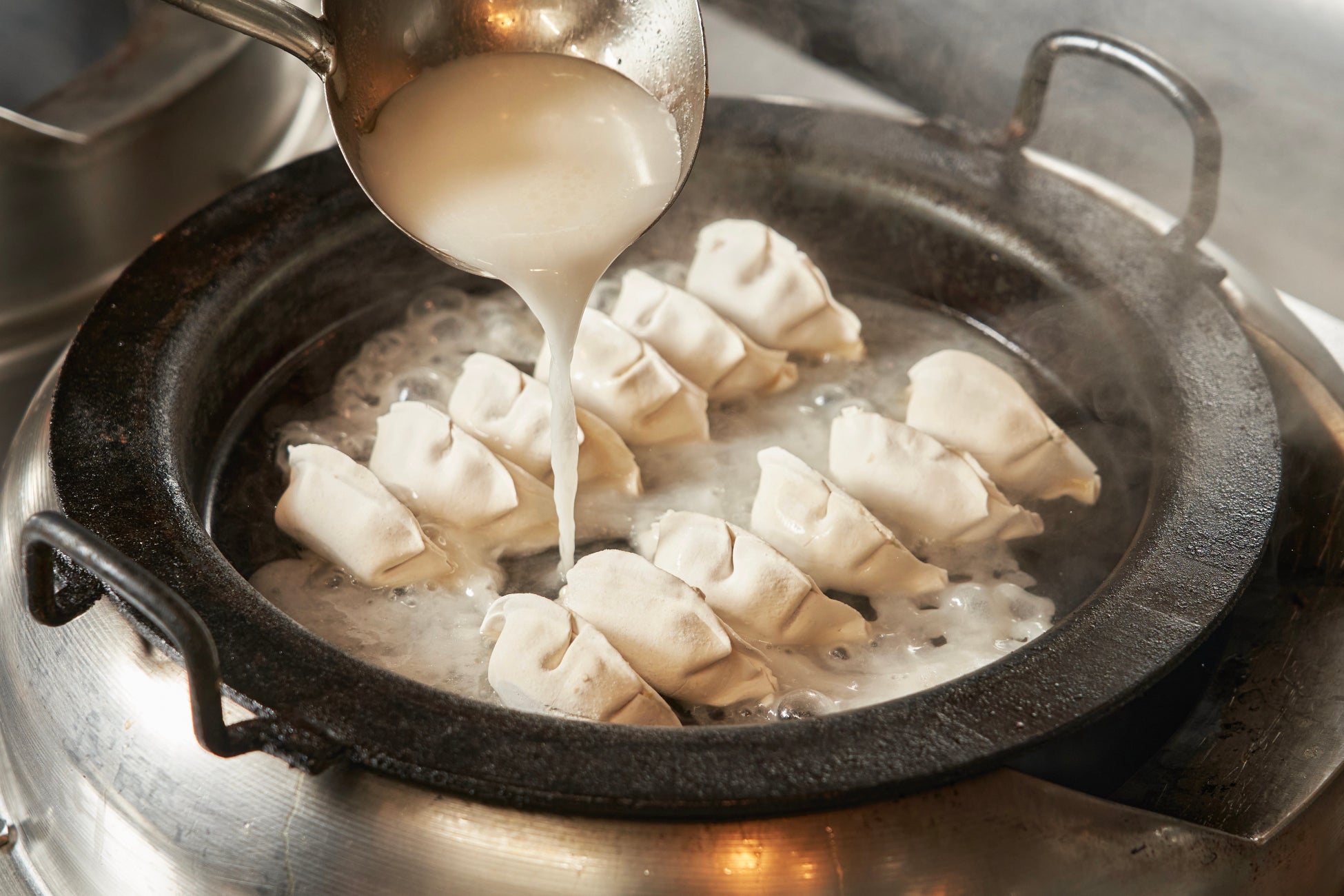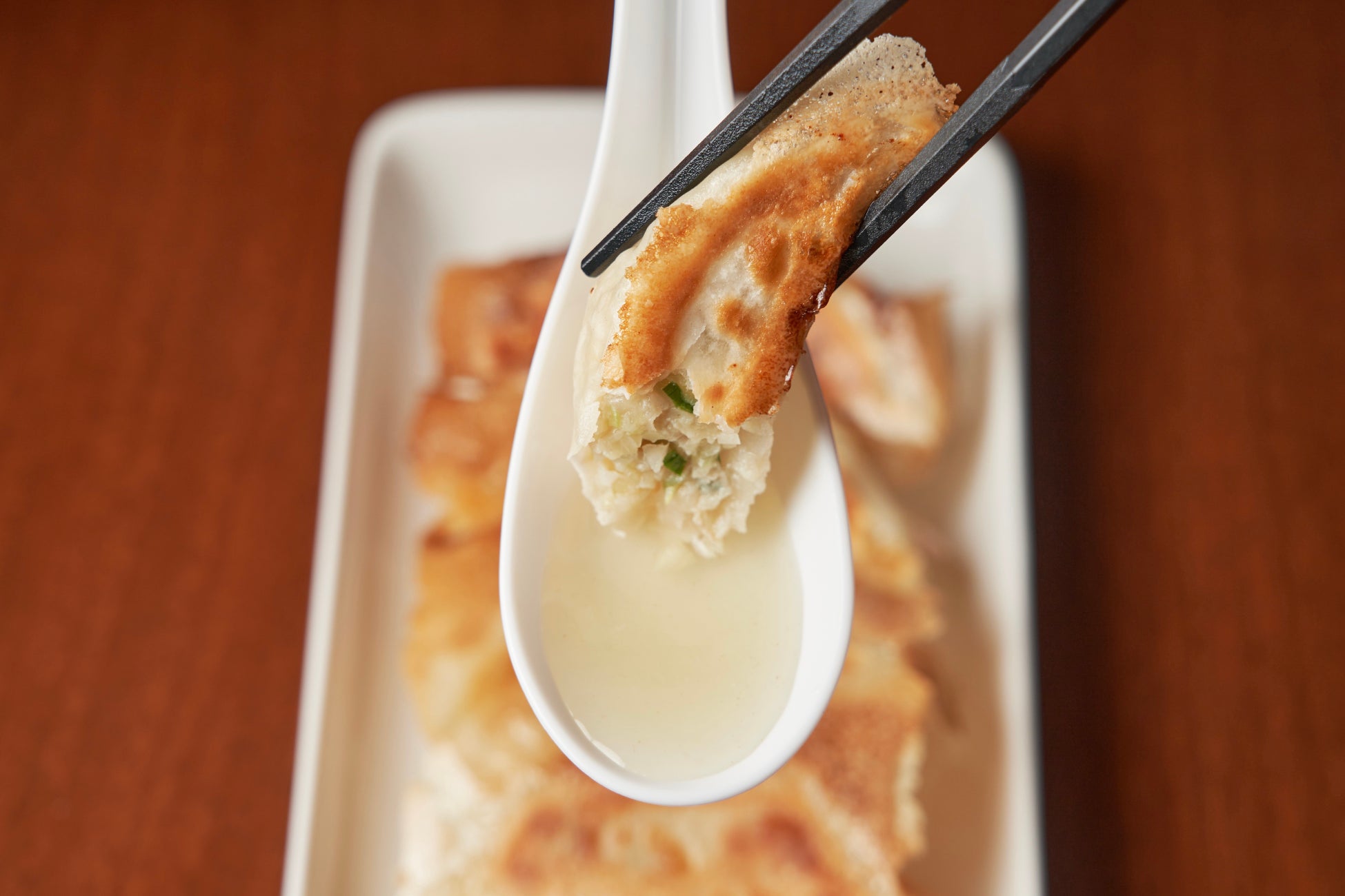自家製の濃厚鶏白湯スープで今までにない味わいの餃子を完成させました。