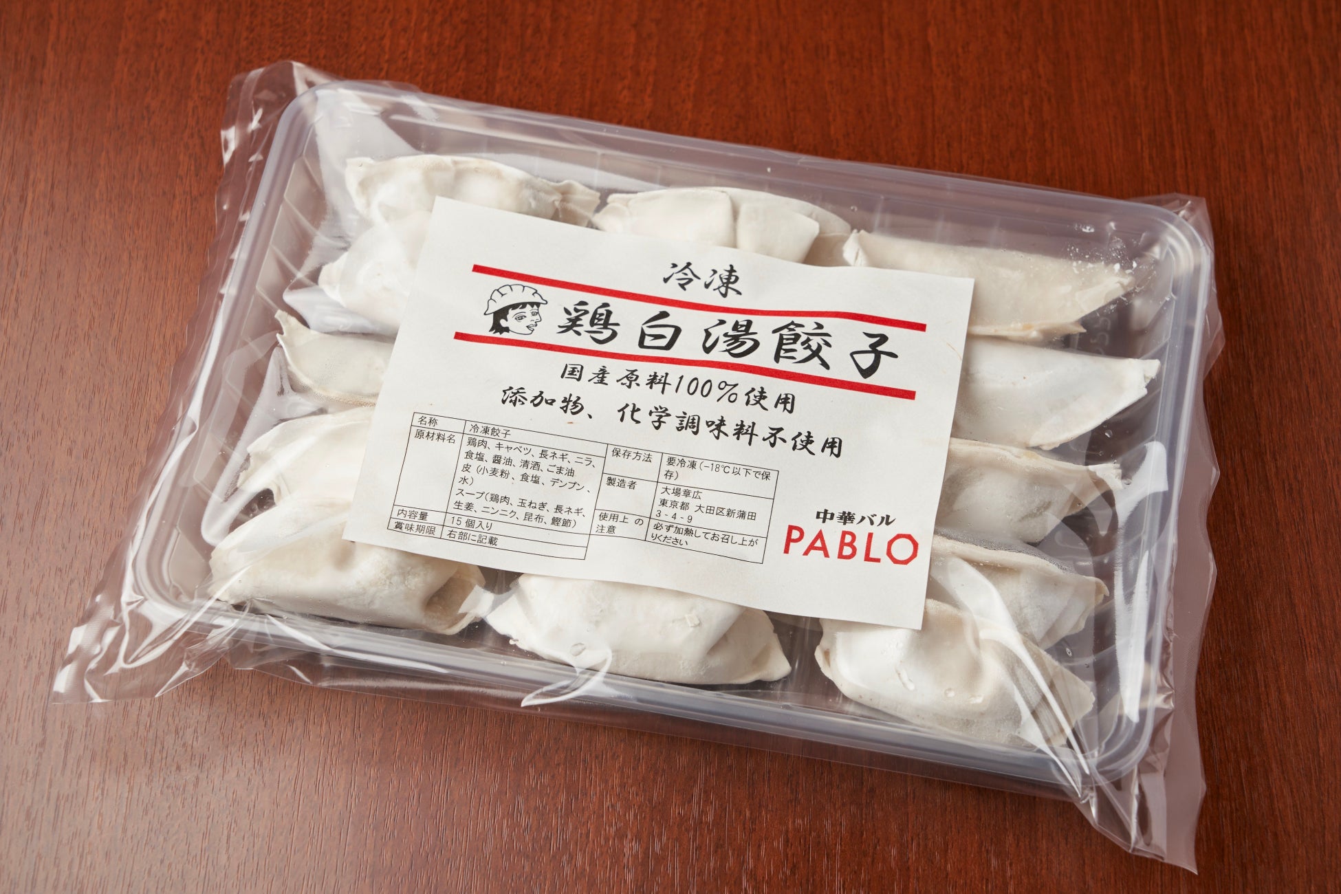 表面はパリッと焼いた焼き餃子ですが、鶏白湯スープを餡に練り込むことで、中にはスープがたっぷり。「化学調味料を使わず、鶏肉を使用し、あっさりとしながらも鶏白湯で旨味を」というオーナー大場のアイディアから生まれた逸品で、今や「中華バル PABLO」の人気ナンバー1商品。今回はそれを冷凍の自宅用として発売します。