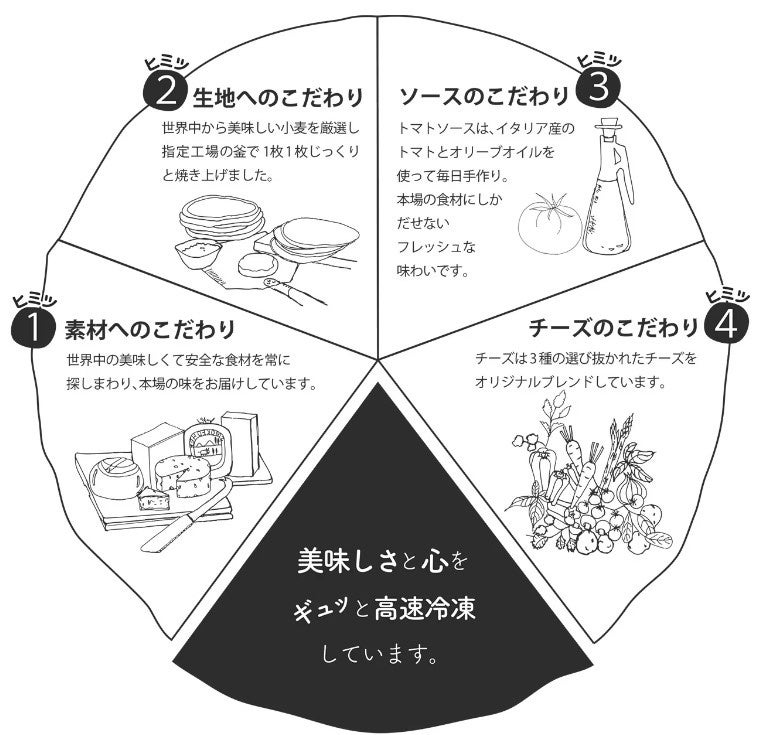 ワンランク上の美味しさをお届けするため、生地にもチーズにもこだわる本格冷凍ピザです