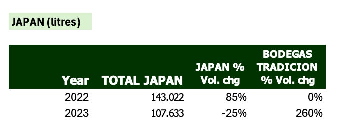 日本向けシェリー・ワインの販売量が24.7%減少した年(2023年)、ボデガス・トラディシオンは、スペイン、アンダルシア州ヘレス地方で唯一の高級VOS(平均熟成年数20年)およびVORS(平均熟成年数30年)の認証ワインのみに特化したワイナリーであり、同期間および市場において260%の増加をしました。