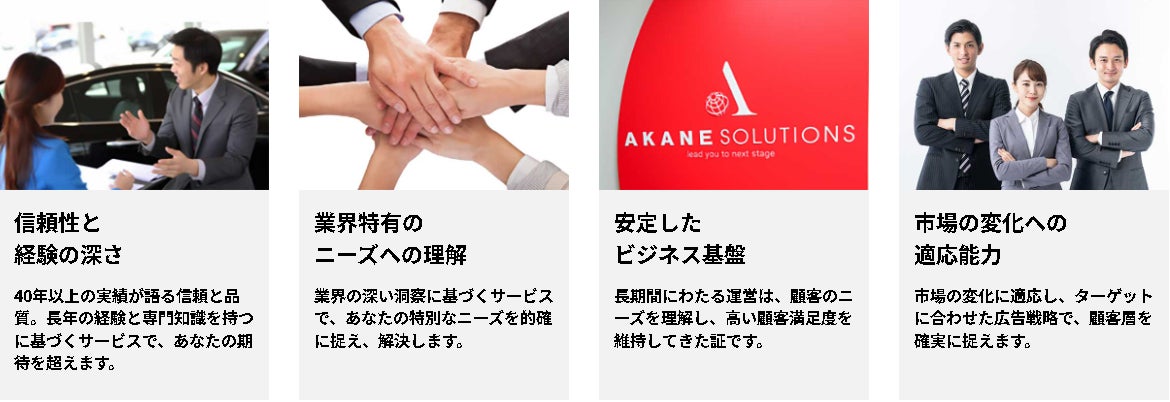 株式会社アカネソリューションズ(本社:東京都台東区東、代表取締役社長:大崎 弘吉、以下「当社」)は、画期的な中古販売店向けホームページ制作サービス『カーブース NEXT』を、2024年4月11日よりリリースいたしました。