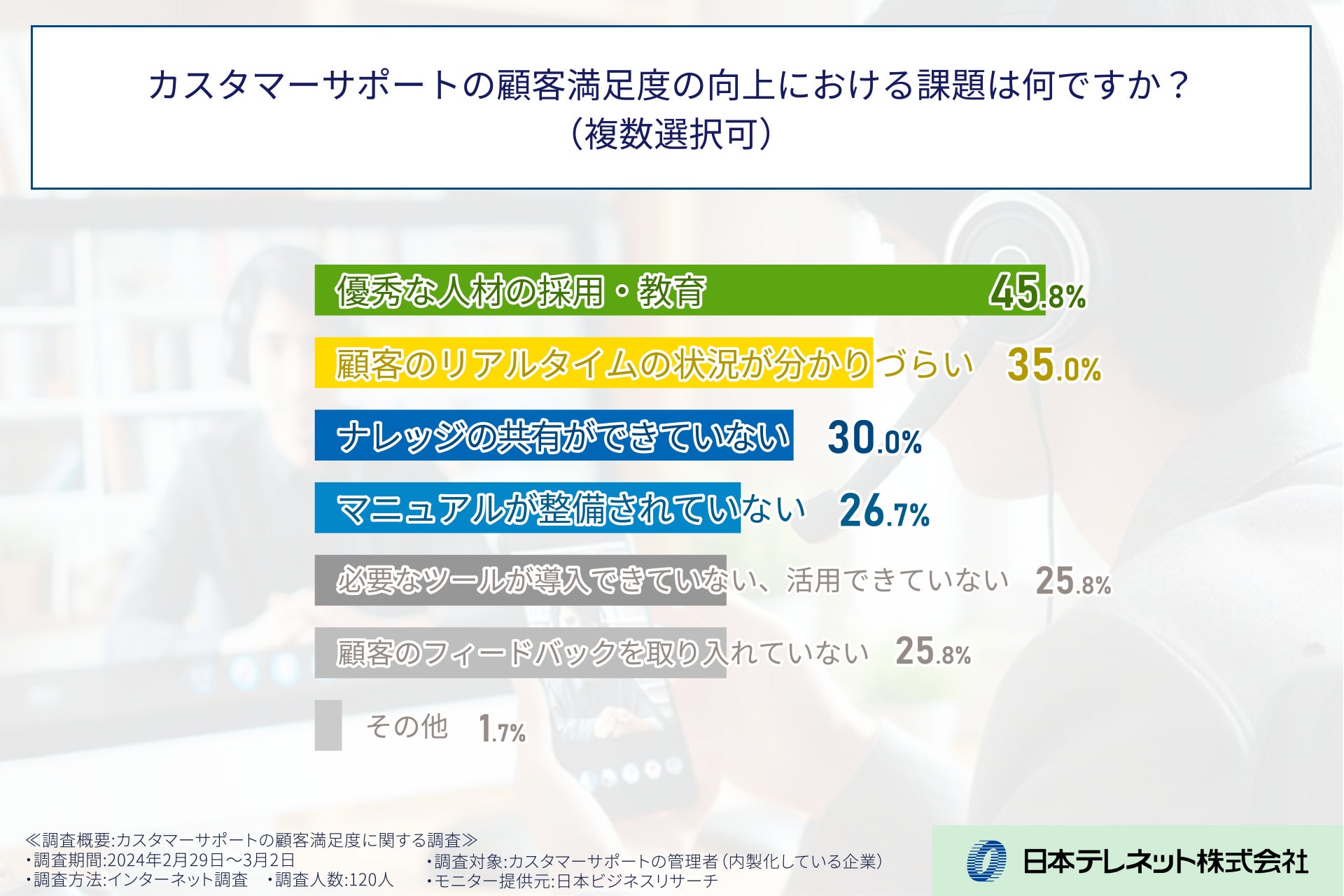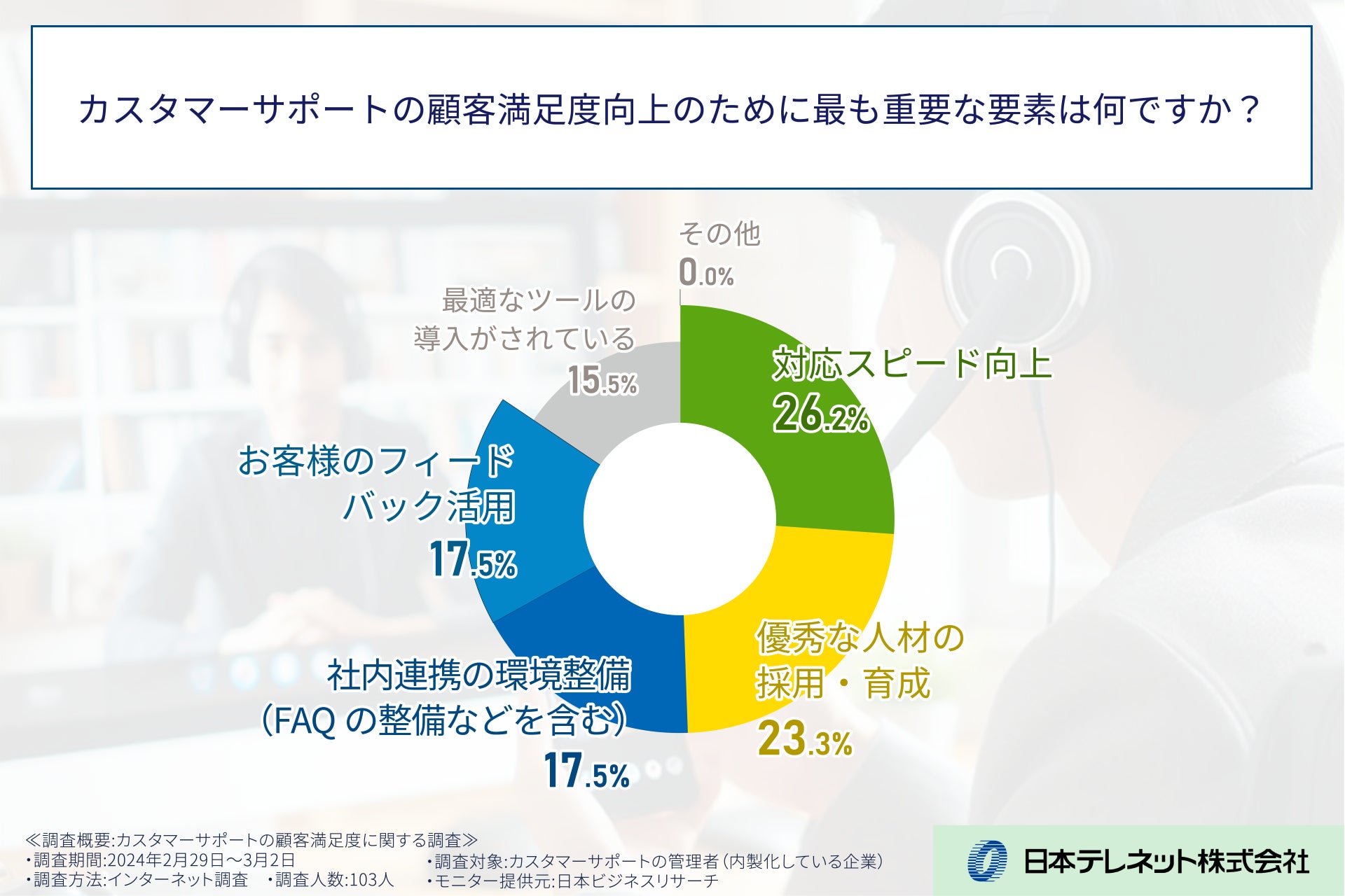 そこで、日本テレネット株式会社は、カスタマーサポートの管理者(内製化している企業)に対し、顧客満足度を向上するためには何が重要なのかなど、カスタマーサポートの顧客満足度に関する調査を実施しました。