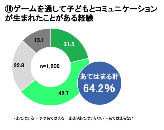 また、ゲームを通して子どもとコミュニケーションが生まれた経験を聞いたところ、6割以上の親に経験があることが分かりました。(⑱)