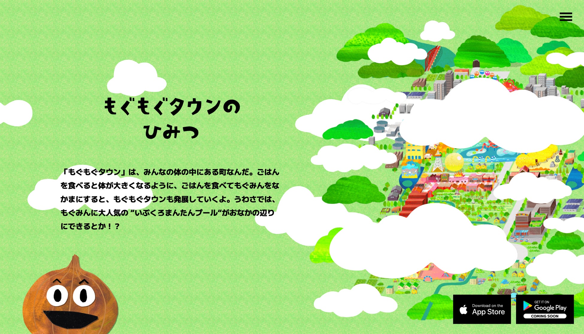 食材キャラクター「もぐみん」を仲間にして、「もぐもぐタウン」を育てよう!子どもの食の悩みを、食育 ゲームでサポート!