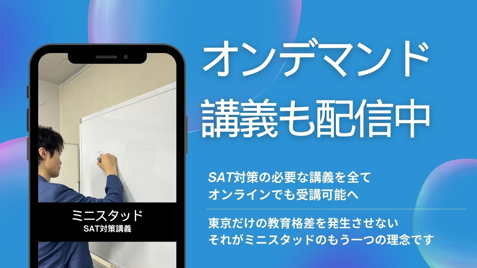 全ての講義がオンデマンドで視聴することが可能です。海外の大学へ進学をしたいが、東京都港区まで来られない方のためにオンデマンド授業もご用意しております。