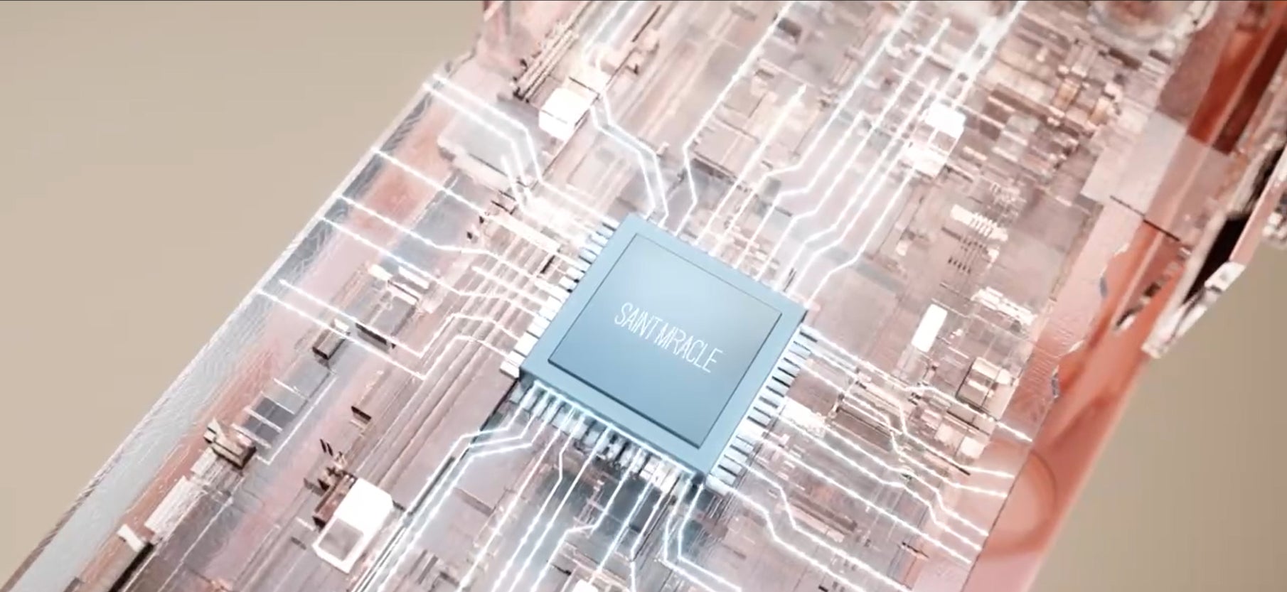 3年間の研究の末、美顔器本体が大きくなりがちな4項目「3MHzのRF」「インバーター機能」「COOL機能」「バッテリー」を含みつつも、スマートフォンのようなスリム&コンパクト化を実現。モバイルバッテリーもセットされている。