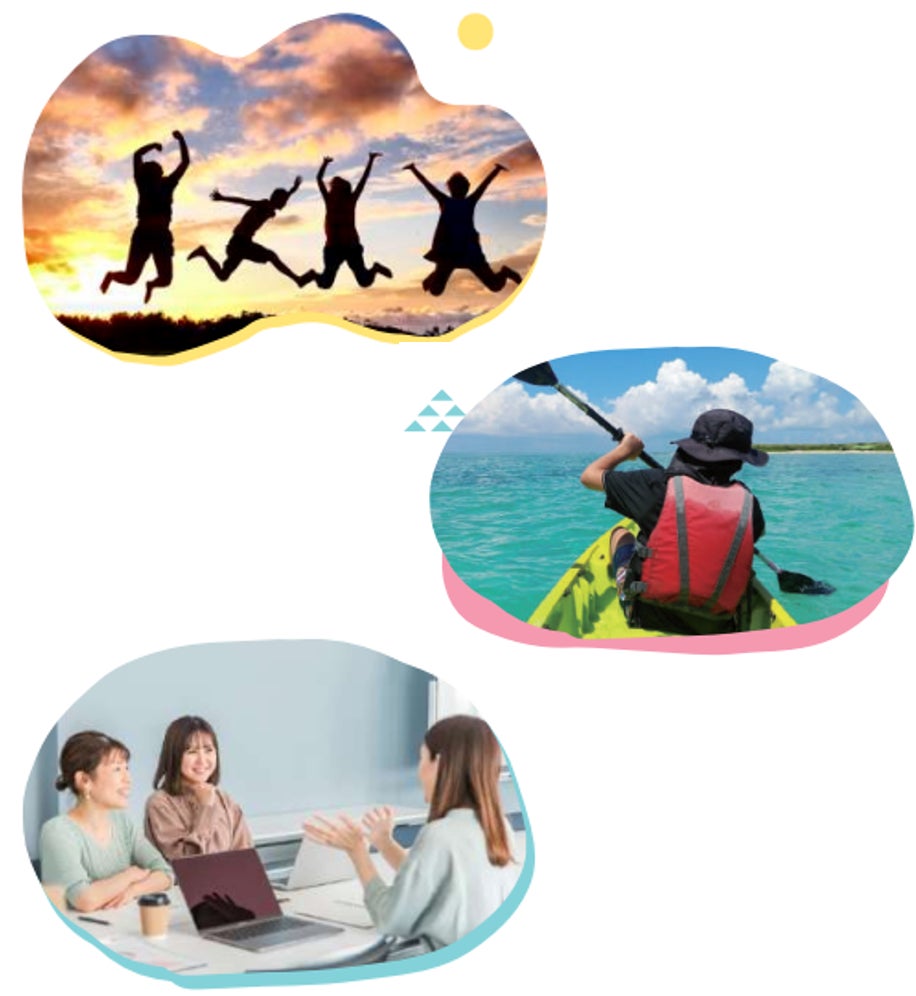 沖縄で実現することができる新しい働き方「ウェルビーイングワーケーション」を気軽に体験していただくために、沖縄旅行費用の一部を補助する「沖縄ワーケーション促進事業モニターツアー 」を展開しています。都会では巡り会えない沖縄ならではのリラックスした空間でよく働き、余暇は思う存分沖縄の自然や文化を体験する。そんなツアーを多くの皆さまにご体験いただきました。