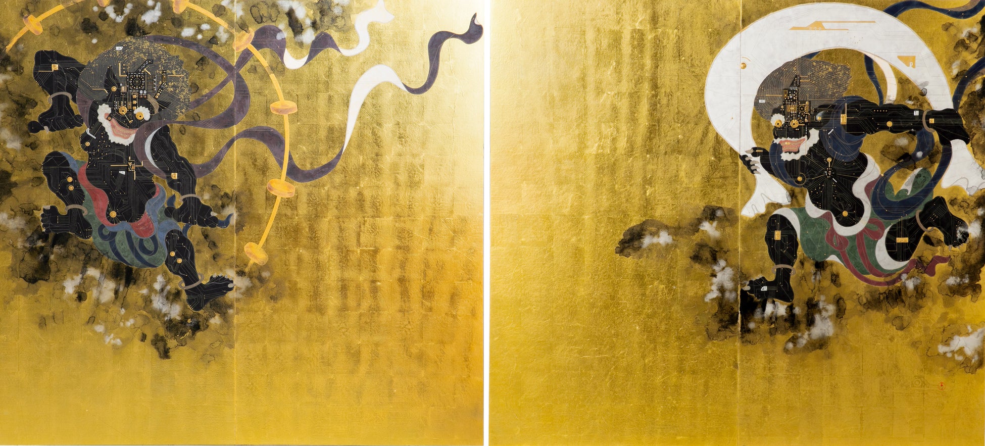 今回の展示会では話題を呼んだ「Electric Flower」を更に大きく進化させた作品が約30点初披露されます。国宝 建仁寺の俵屋宗達《風神雷神図》に独自の解釈を加えた《半導体風神雷神図2024》、伝統的な京琳派のモチーフとして知られる秋草と月を未来へのつながりとして表現する「半導体月光Wi-Fi秋草図」など見どころ満載です。