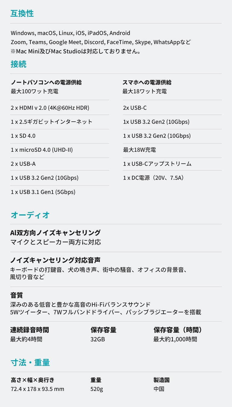 ChatGPT連携のAI要約作成と11in1のオーディオドック機能がこれ1台に集約されました。