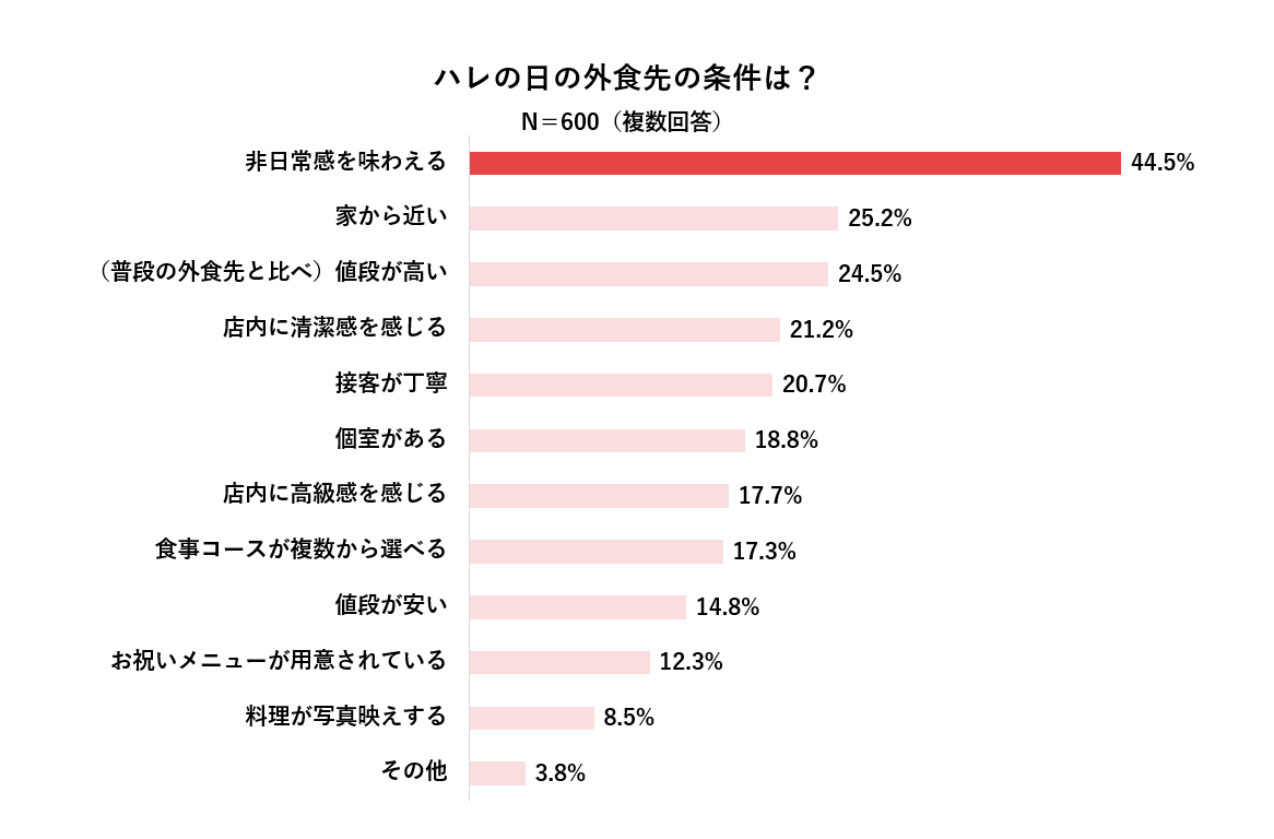 ・ハレの日の外食先の条件、1位は「非日常感を味わえる」