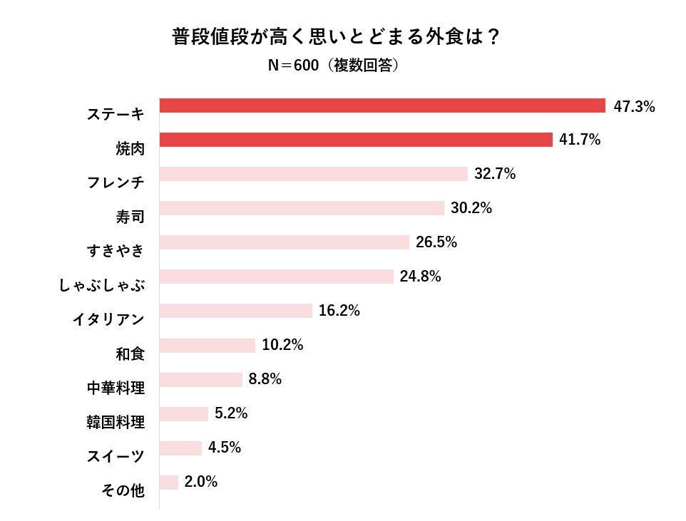 普段値段が高く思いとどまる外食、1位「ステーキ」2位「焼肉」と肉料理が上位に