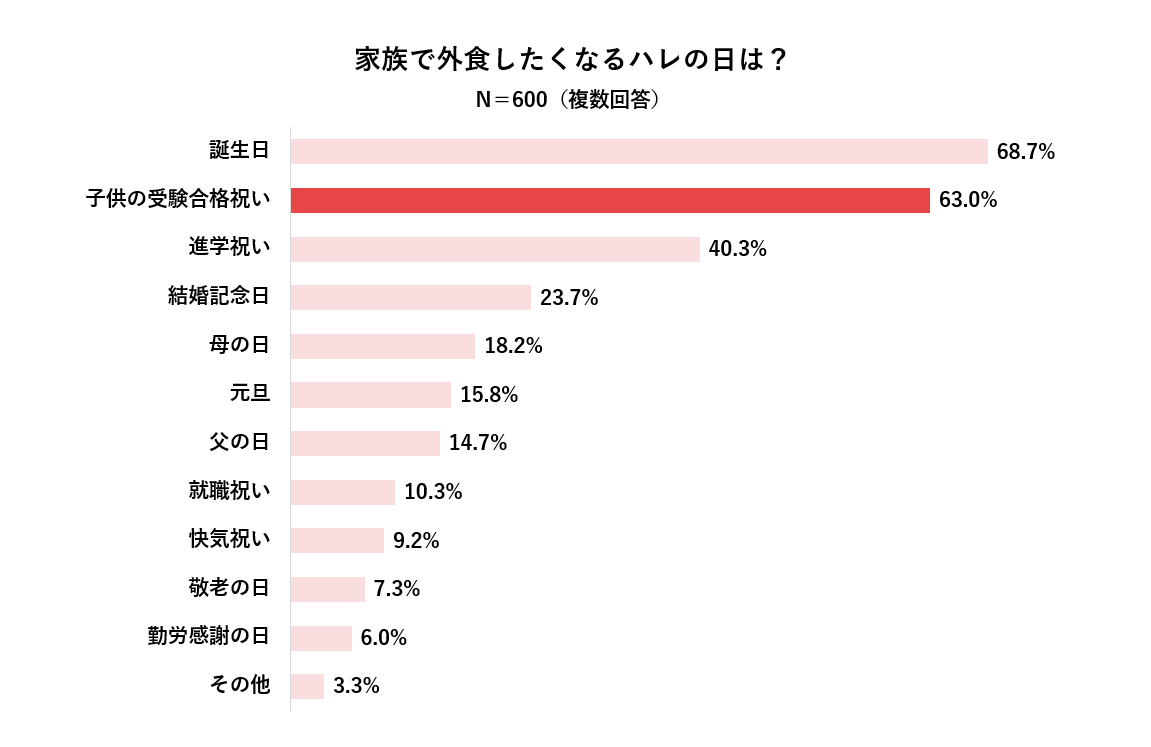 外食したくなるハレの日、「子供の受験合格祝い」が2位にランクイン