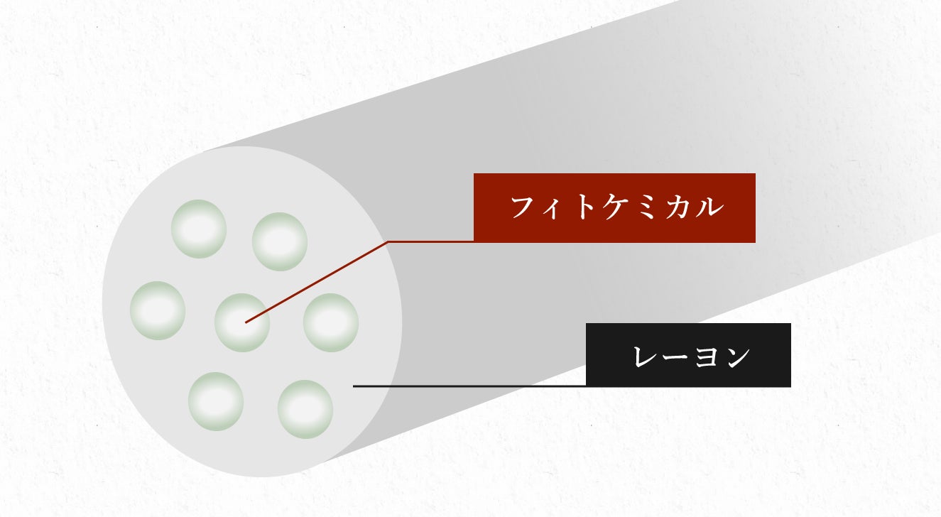 curefilo®(キュアフィーロ)は、植物の有効成分を天然の化学物質といわれるフィトケミカル(溶液)に加工し、繊維に練り込んだ世界初の新素材です。