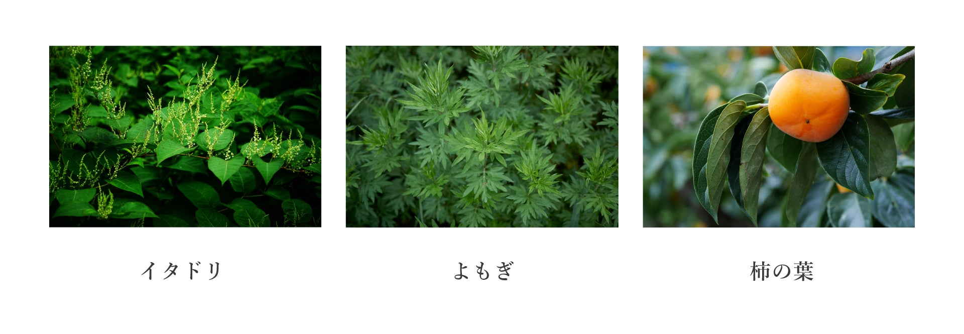 有効成分は、「イタドリ・よもぎ・柿の葉」の三種から抽出されています。
