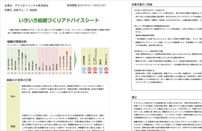 ▲いきいきアドバイスシート 組織ごとにエンゲージメント向上のための対策アドバイスを提供します。