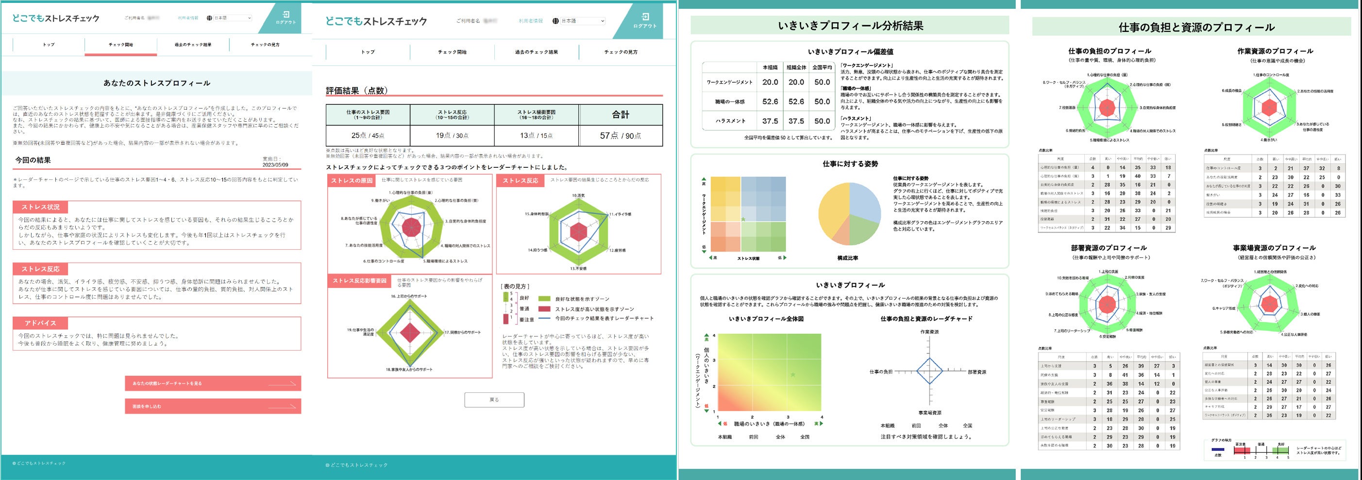 ▲ ストレスチェック分析結果レポートの例(左:個人結果/右:組織分析いきいきプロフィール分析結果)