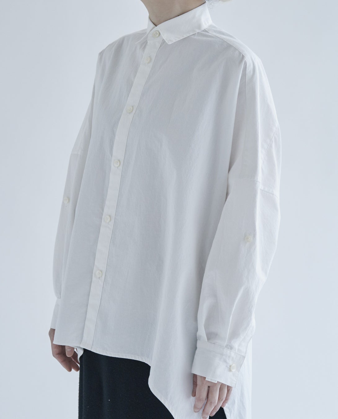 ベーシックなシャツに両腕にたくし上げようのタブがついているのが基本のデザイン
