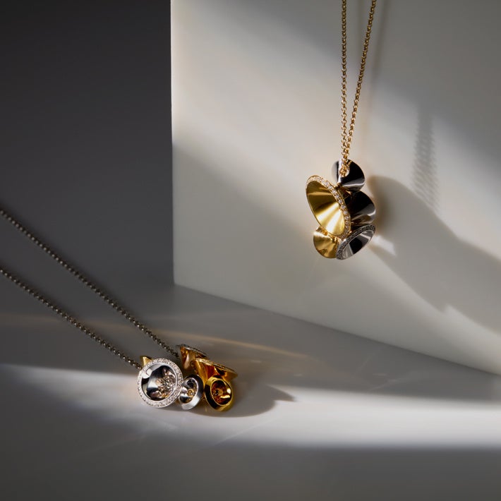 ゴールド、シルバー、ダイヤモンドをミックスした新作は、アイコニックな天然石のデザインとは一線を画したリッチな重厚感と遊び心が掛け合わされた魅力があるシリーズです。