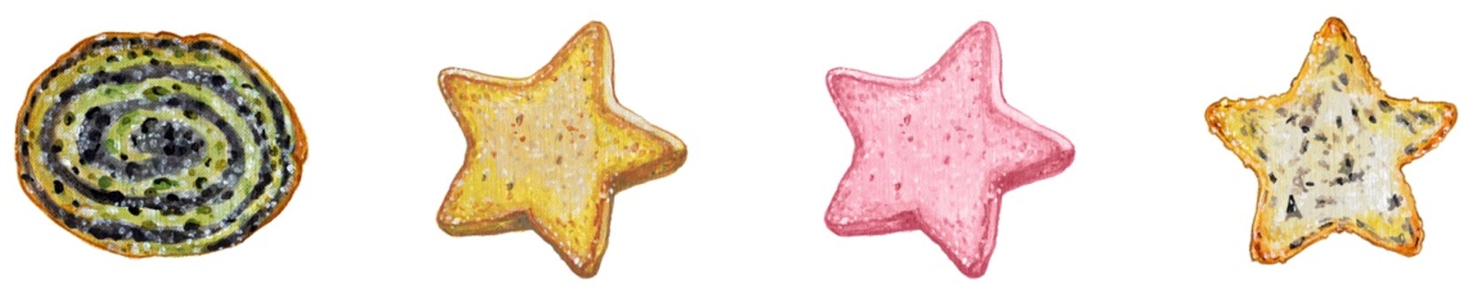 星いちご:甘酸っぱいいちご風味、ポップな星型。