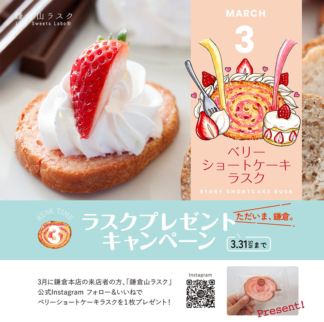 鎌倉山ラスク 鎌倉本店のオープンを祝して、2024年3月9日(土)〜3月31日(日)の期間において、「鎌倉山ラスク オープニングイベント」を開催いたします。本イベントでは以下4つのプレゼントを、お越しいただいたお客様にプレゼントいたします。