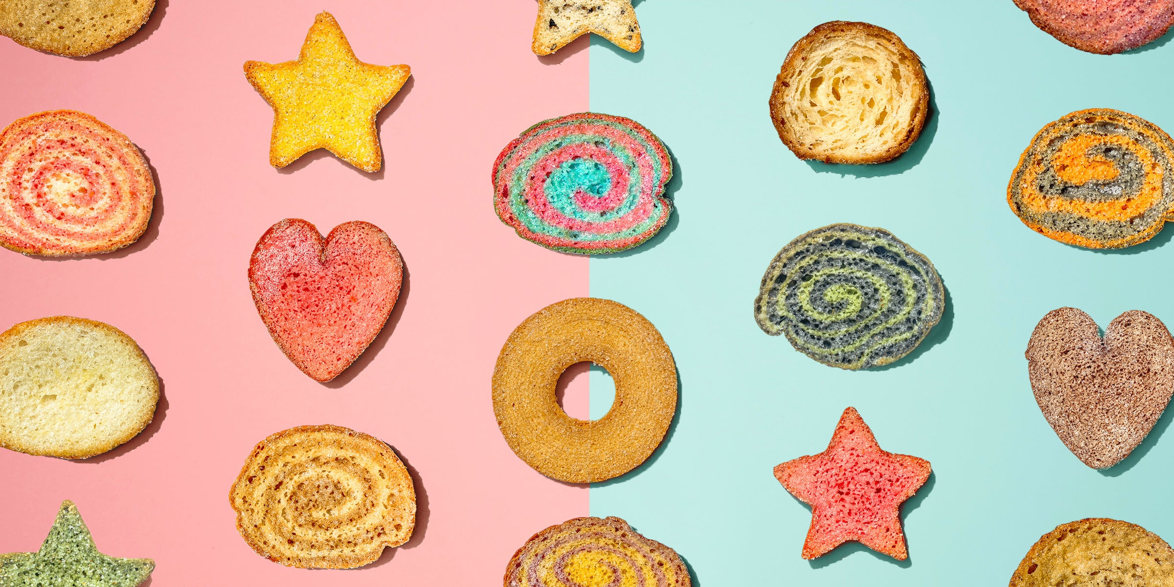 サクサク食感とポップなデザインでお馴染みのラスクには、15種類以上のフレーバーをご用意。シンプルだからこそ最も味にこだわった「オールドファッション」をはじめ、いちごの酸味が効いた可愛い渦のラスク「ベリーショートケーキ」、ほんのり香るメープルが美味しい星型ラスク「星メープル」など、当店ならではのラスクを多数取り揃えております。さらにオープン記念として、チョコレートを丁寧にコーティングした贅沢チョコラスクが6枚入った「CUBE チョコレート」も販売します。